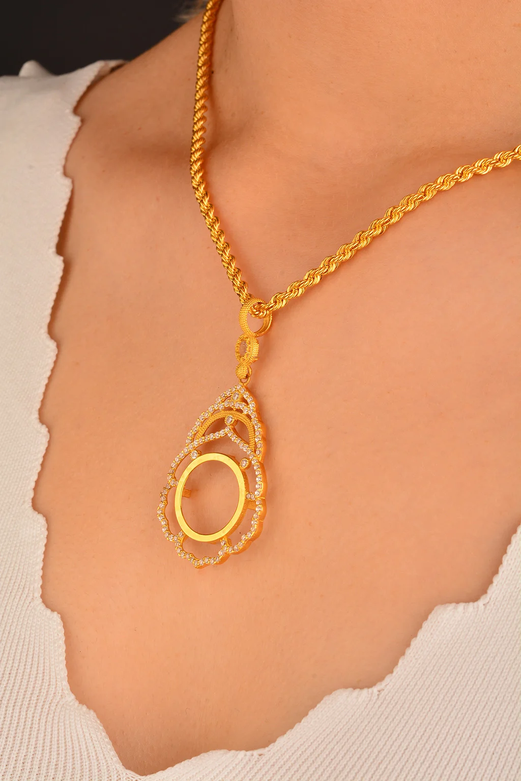 Cebeci 14 Ayar Taşlı Çerçeve Altın Kolye Ucu