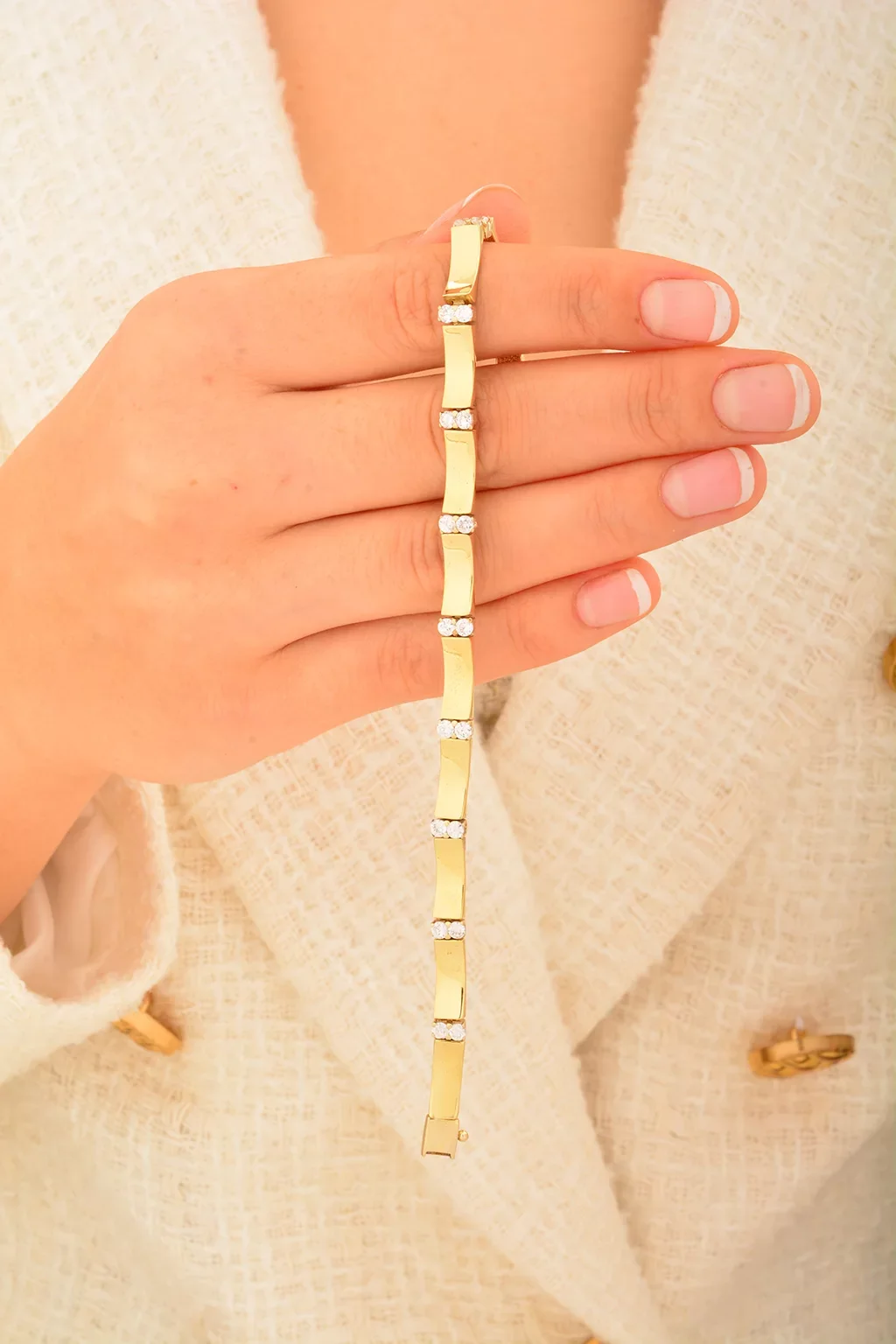 Cebeci 14 Ayar Taşlı İnce Altın Bileklik
