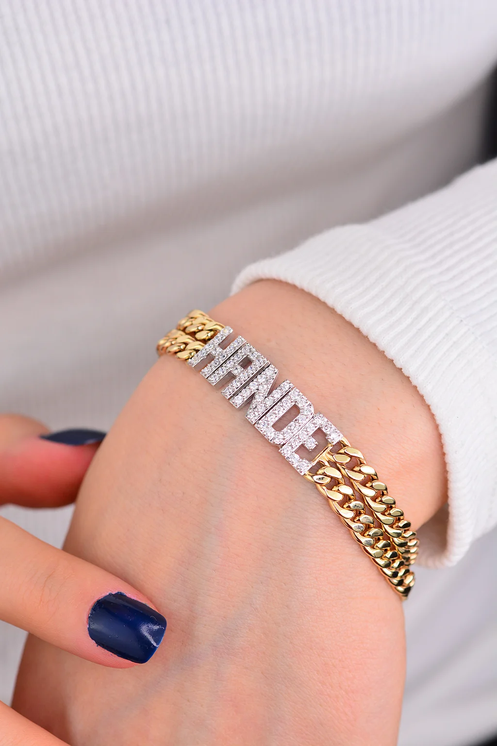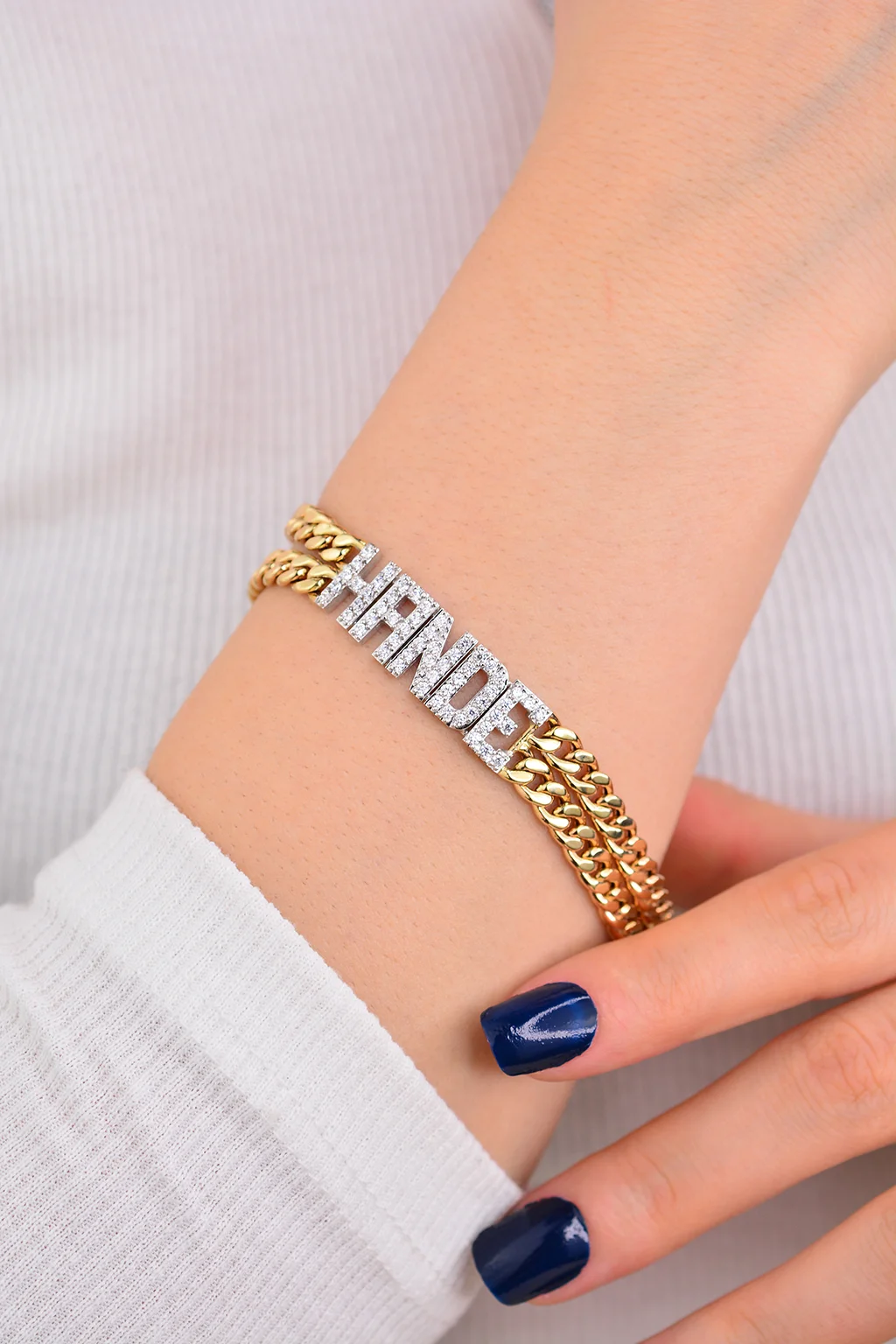 Cebeci 14 Ayar Taşlı İsimli Altın Bileklik