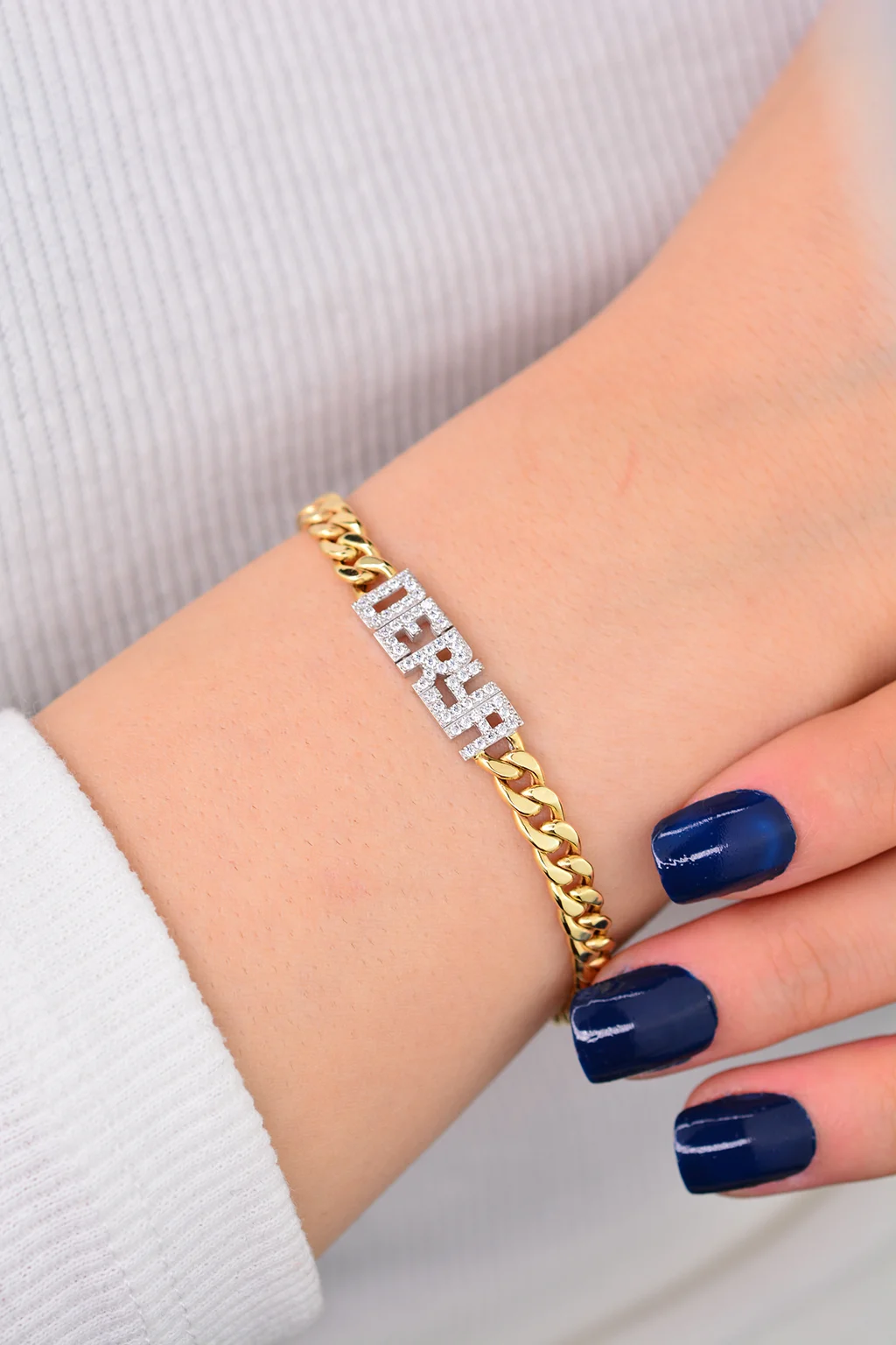 Cebeci 14 Ayar Taşlı İsimli Altın Bileklik