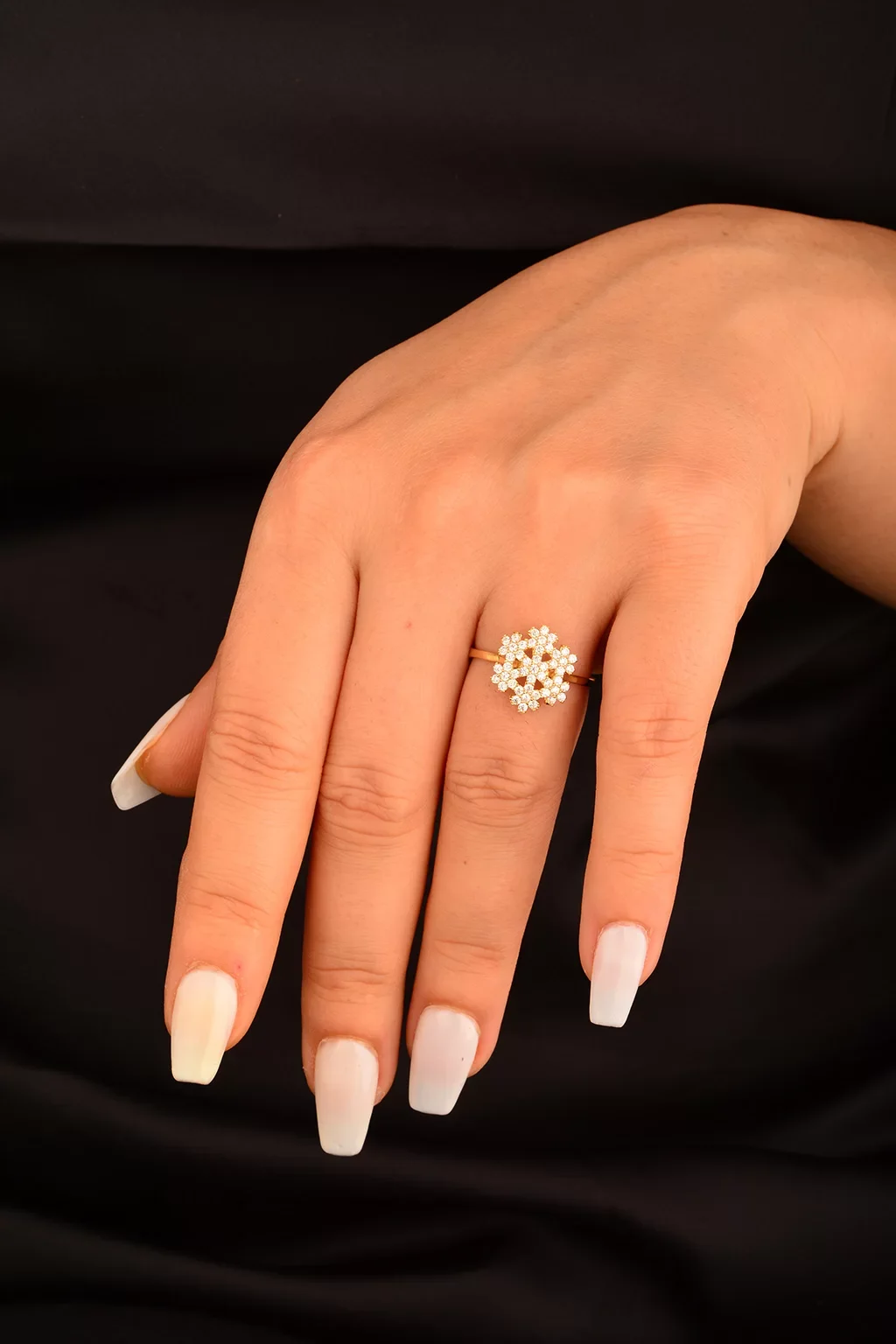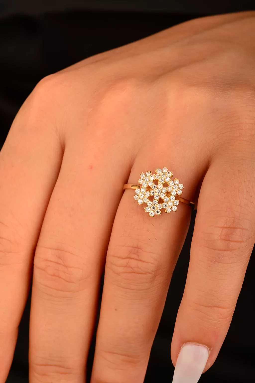 Cebeci 14 Ayar Taşlı Kar Tanesi Altın Yüzük