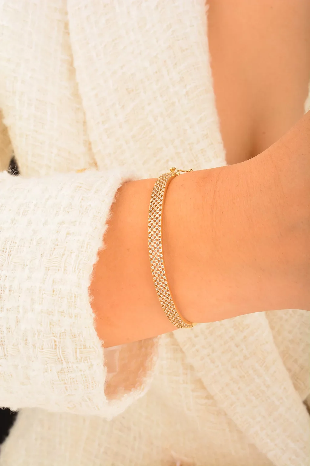 Cebeci 14 Ayar Taşlı Kelepçe Altın Bilezik