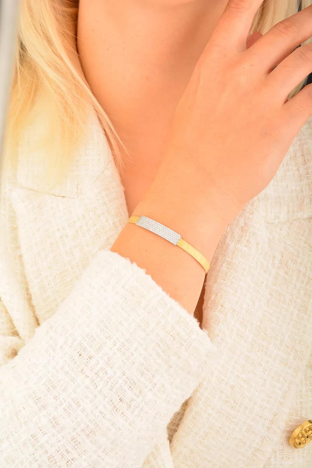 Cebeci 14 Ayar Taşlı Kelepçeli Altın Bilezik