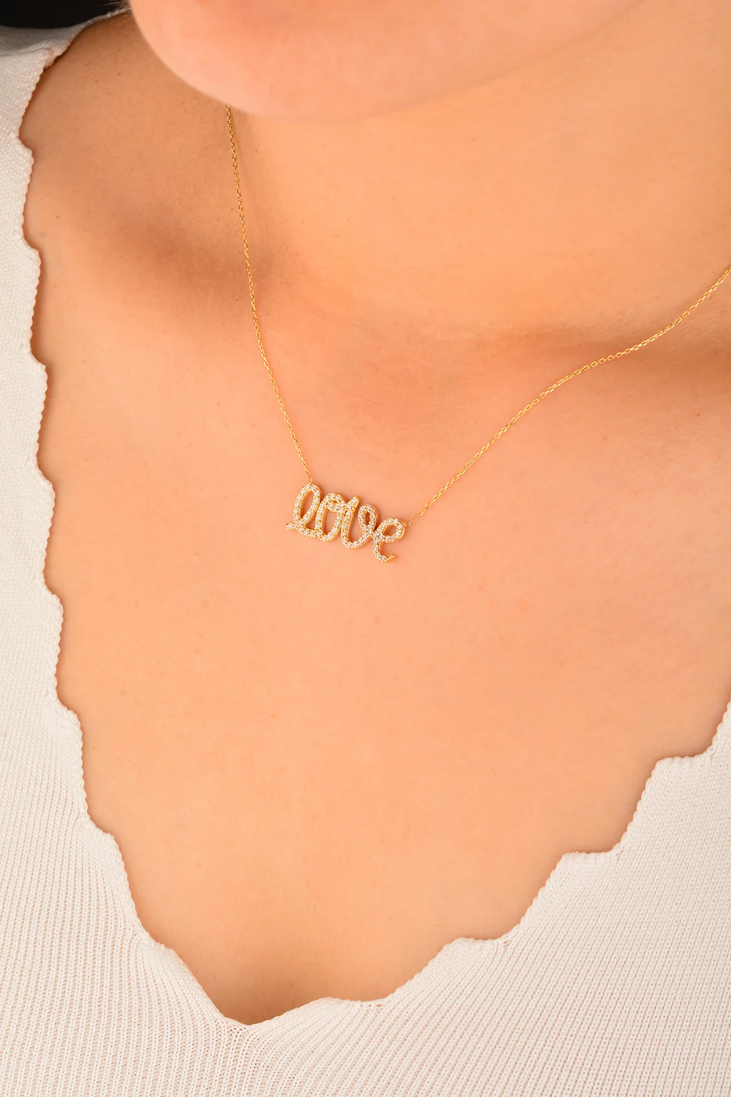Cebeci 14 Ayar Taşlı Love Altın Kolye