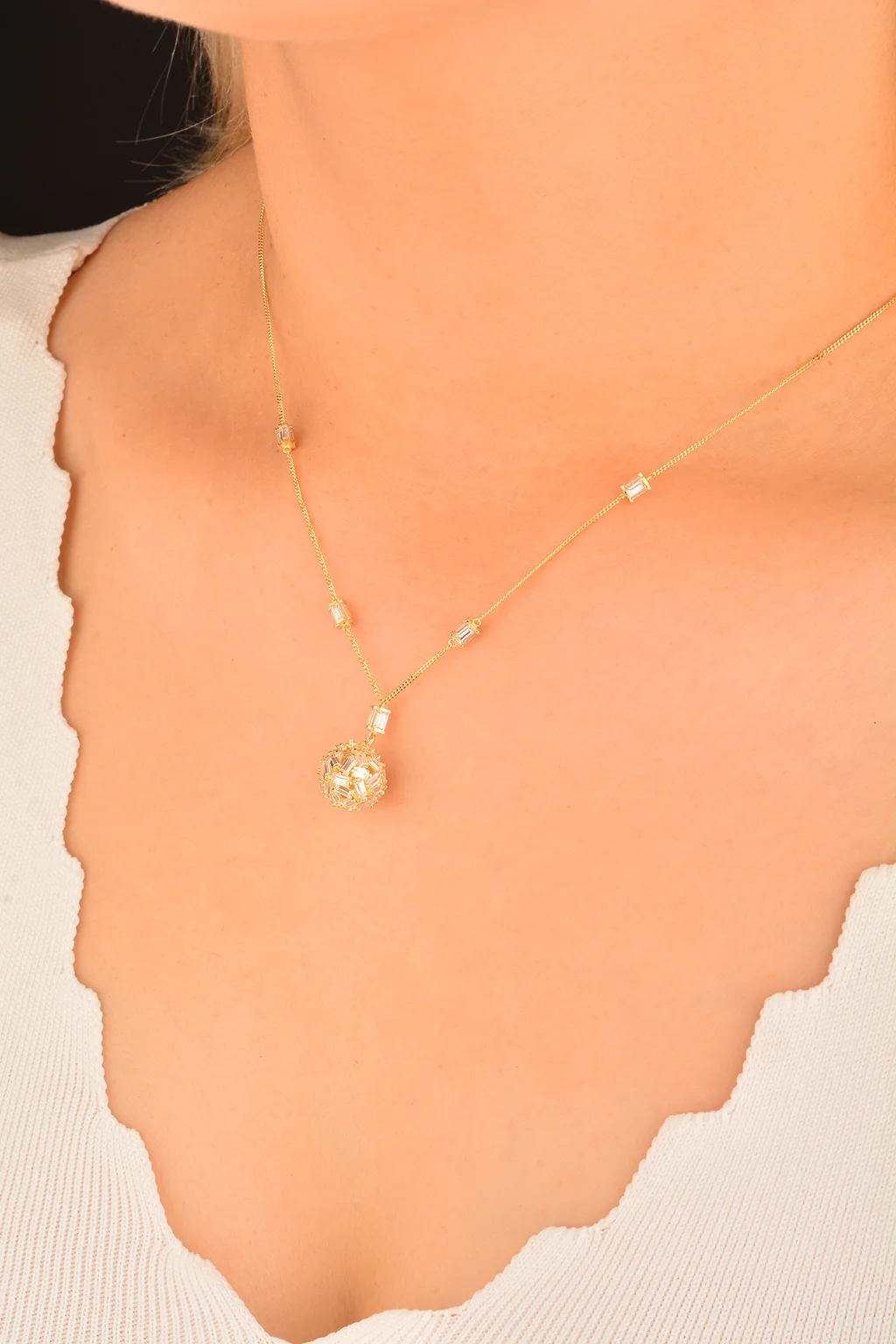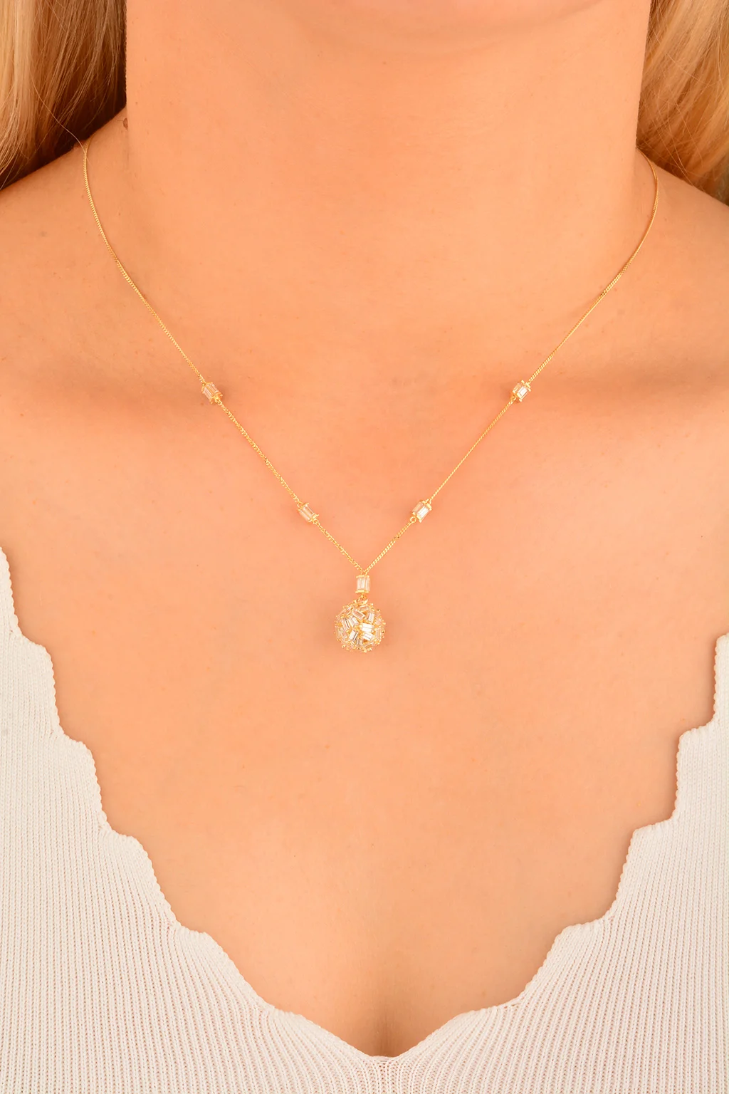 Cebeci 14 Ayar Taşlı Top Altın Kolye