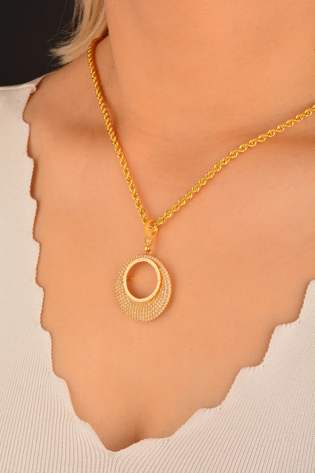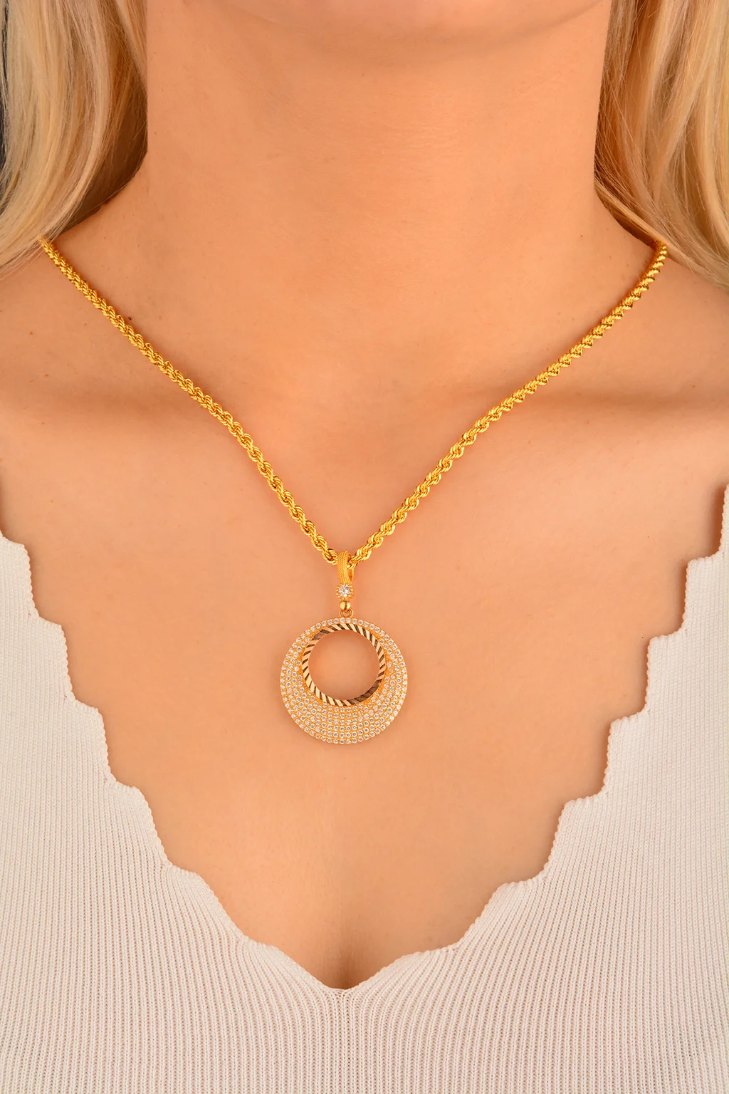 Cebeci 14 Ayar Taşlı Yuvarlak Altın Kolye Ucu