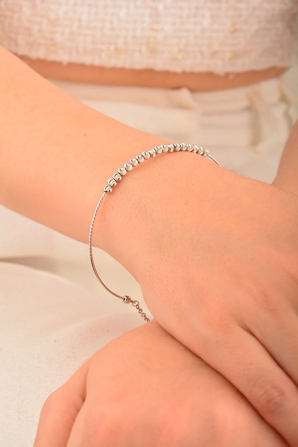 Cebeci 14 Ayar Toplu Beyaz Altın Bileklik