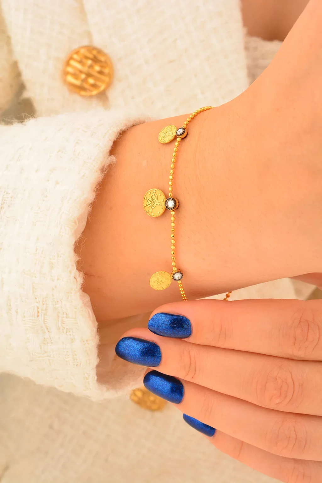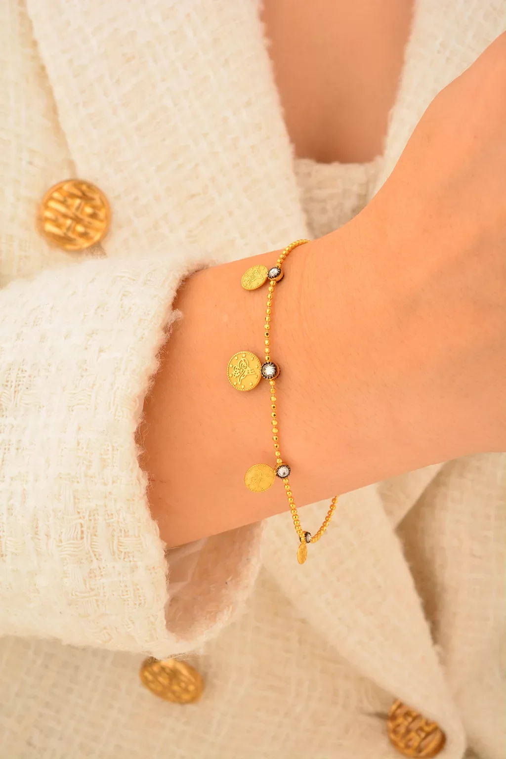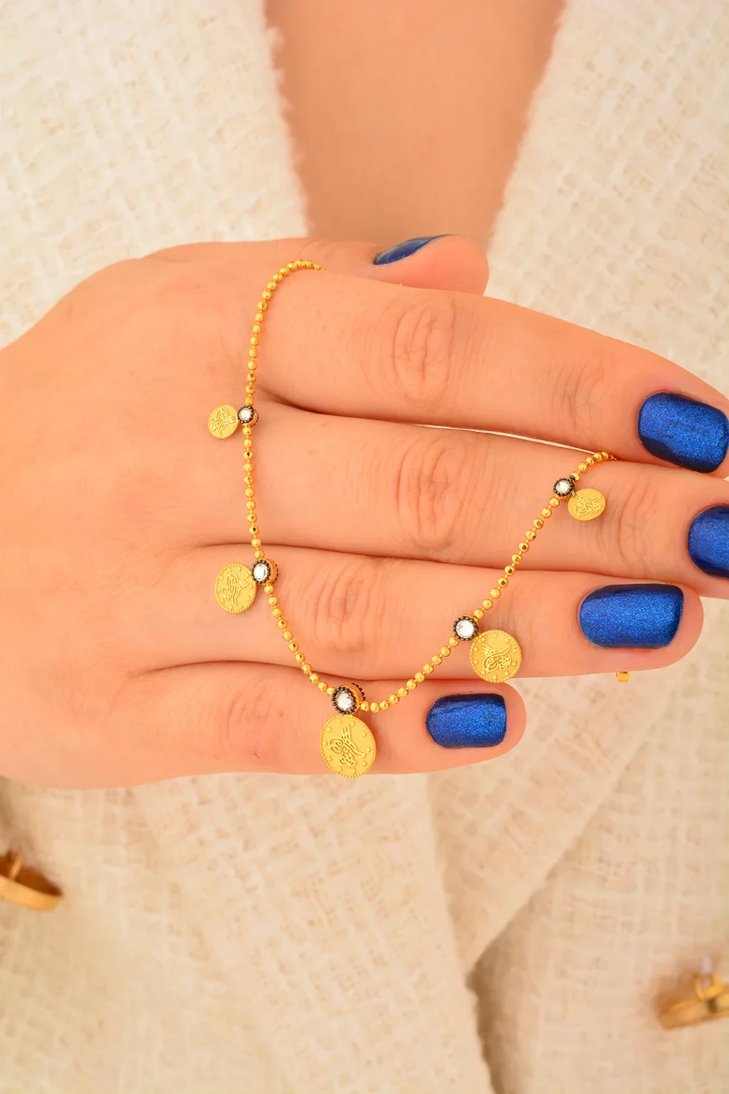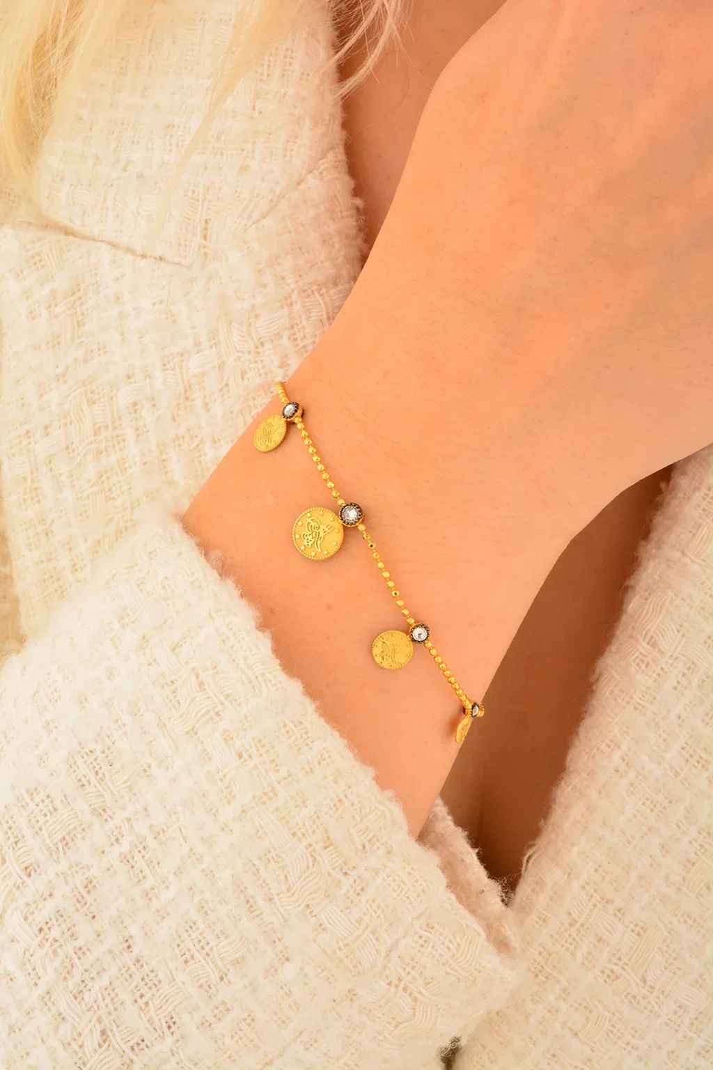 Cebeci 14 Ayar Tuğralı Sıralı Altın Bileklik