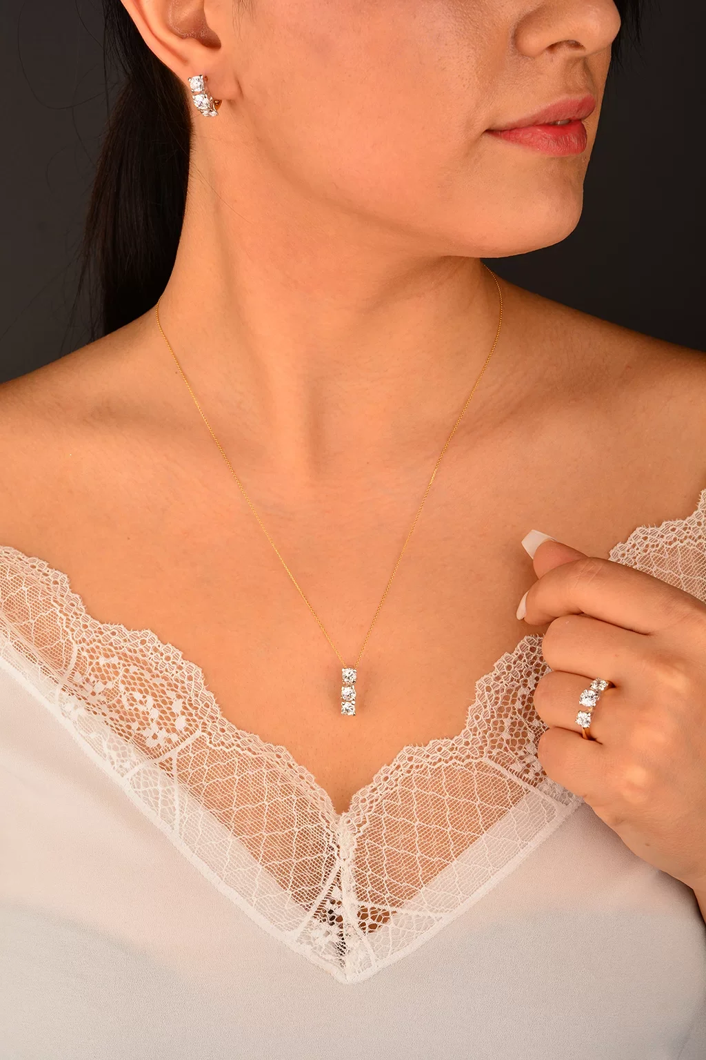 Cebeci 14 Ayar Üç Sıra Taşlı Altın Set Takımı