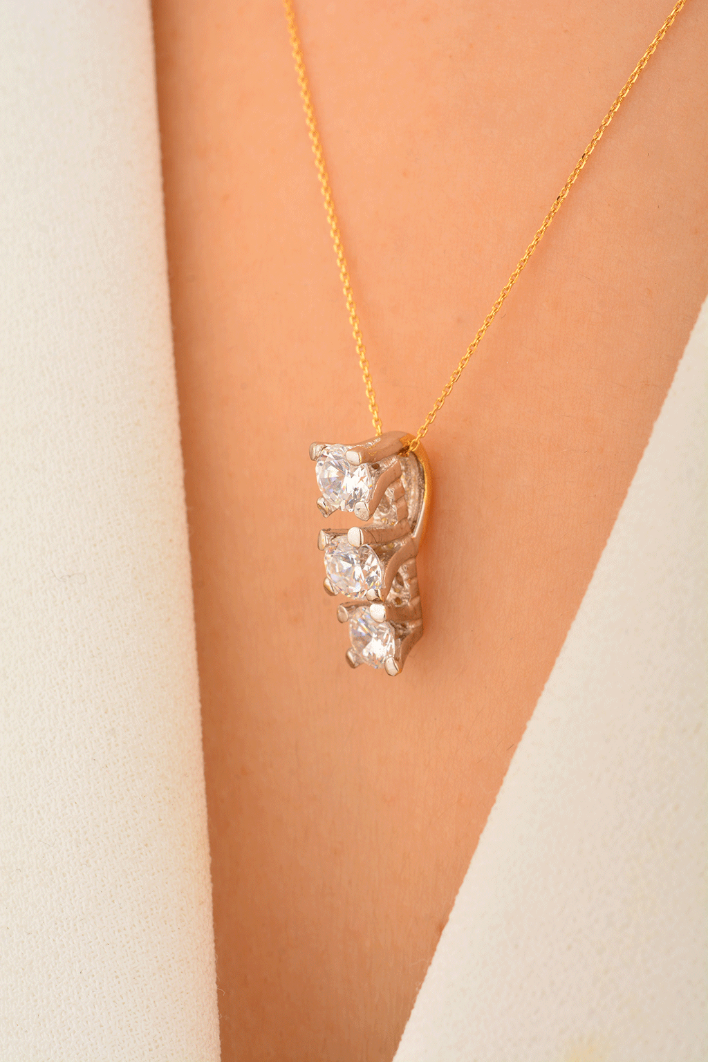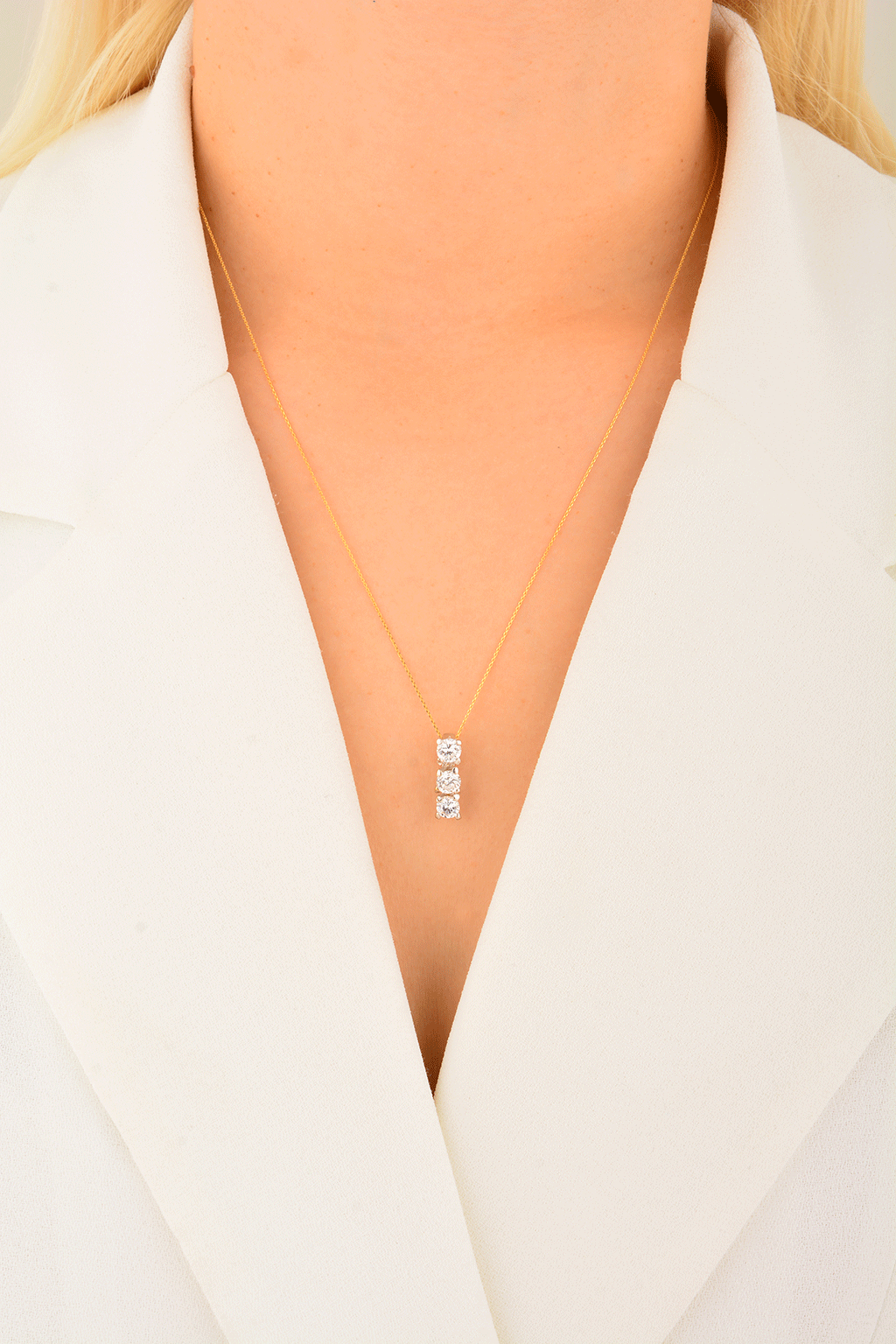 Cebeci 14 Ayar Üç Taşlı Altın Kolye