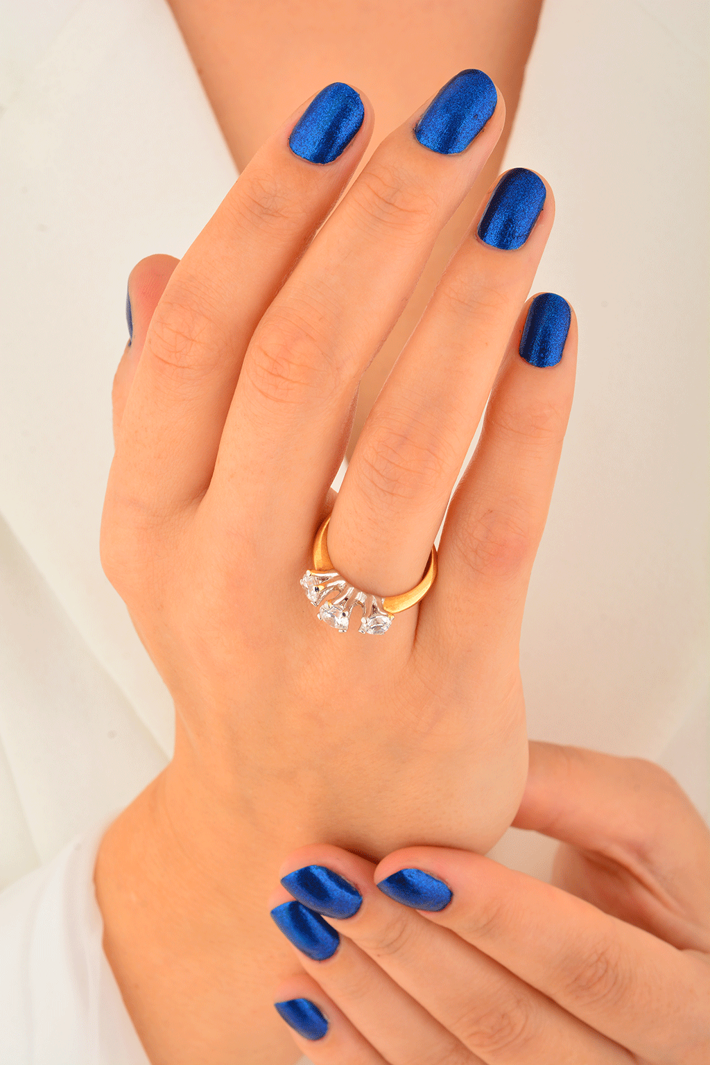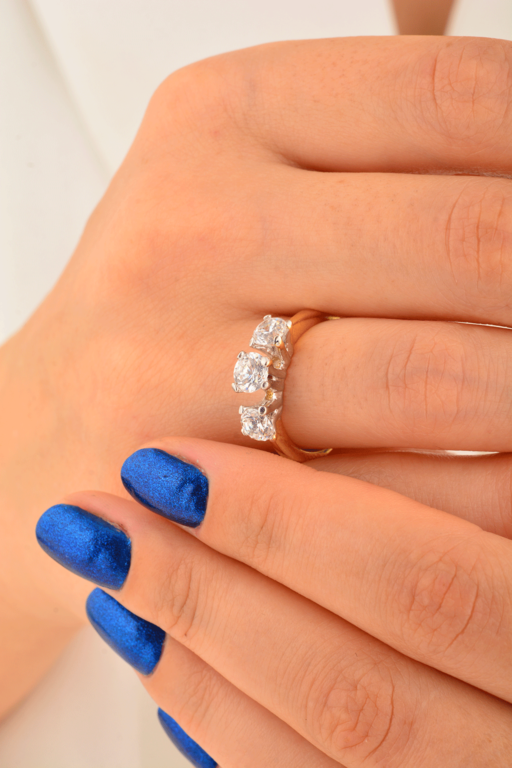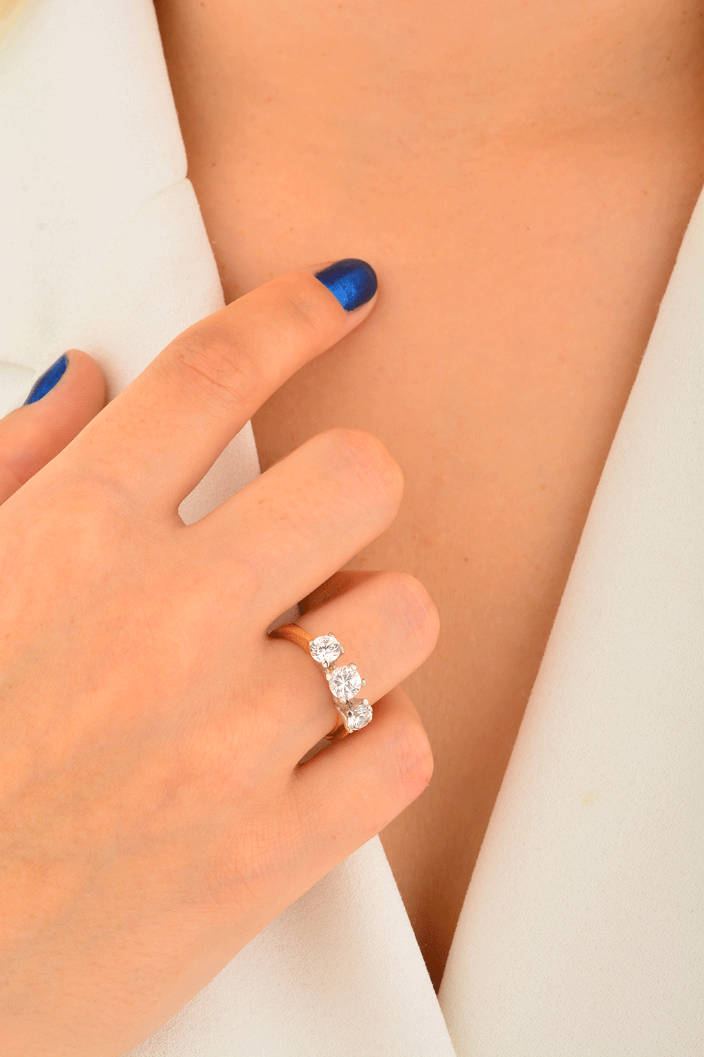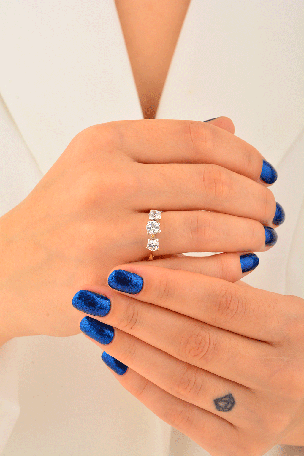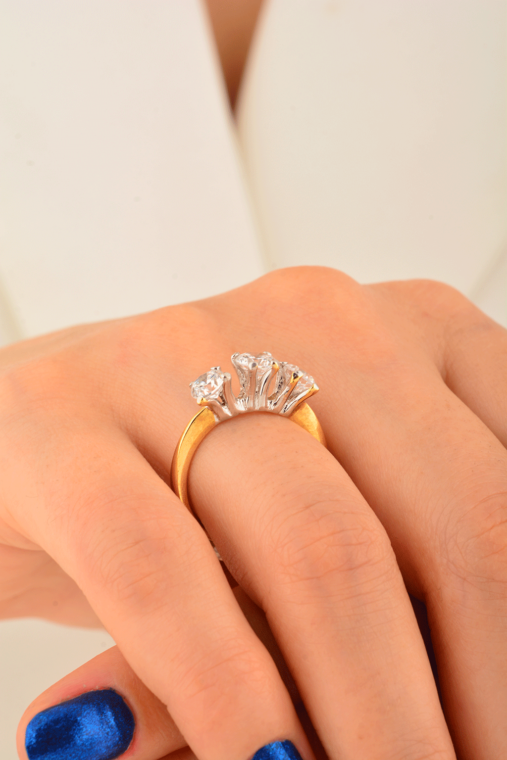 Cebeci 14 Ayar Üç Taşlı Altın Yüzük