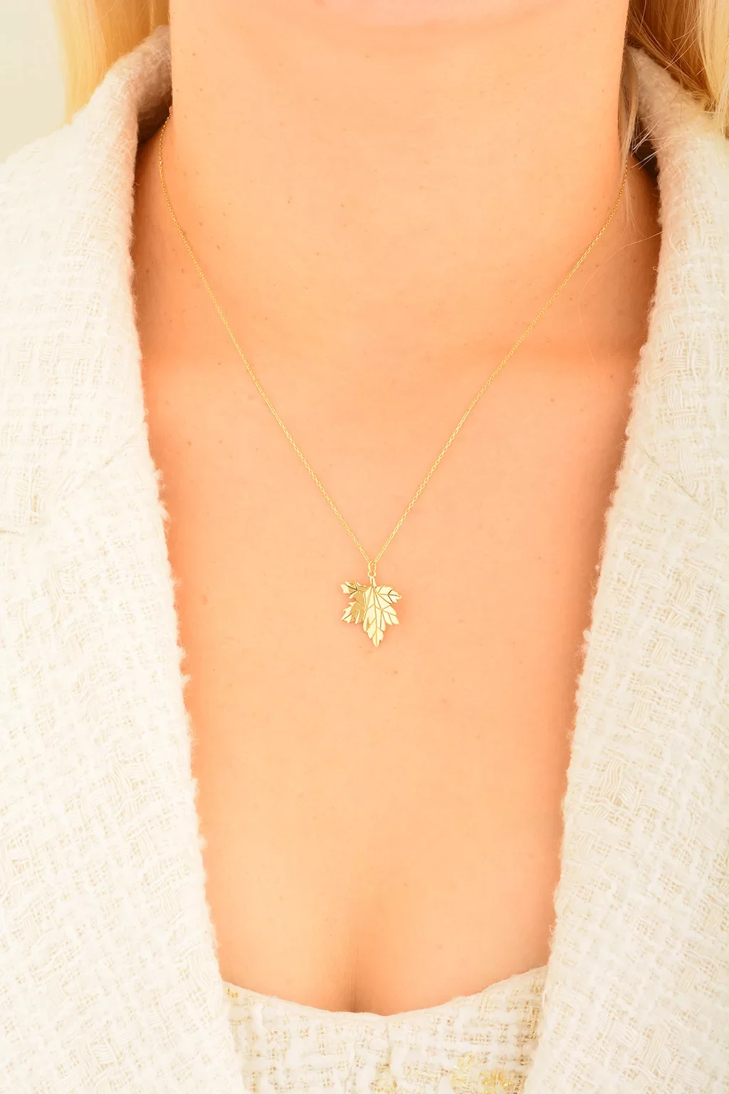 Cebeci 14 Ayar Yaprak Altın Kolye