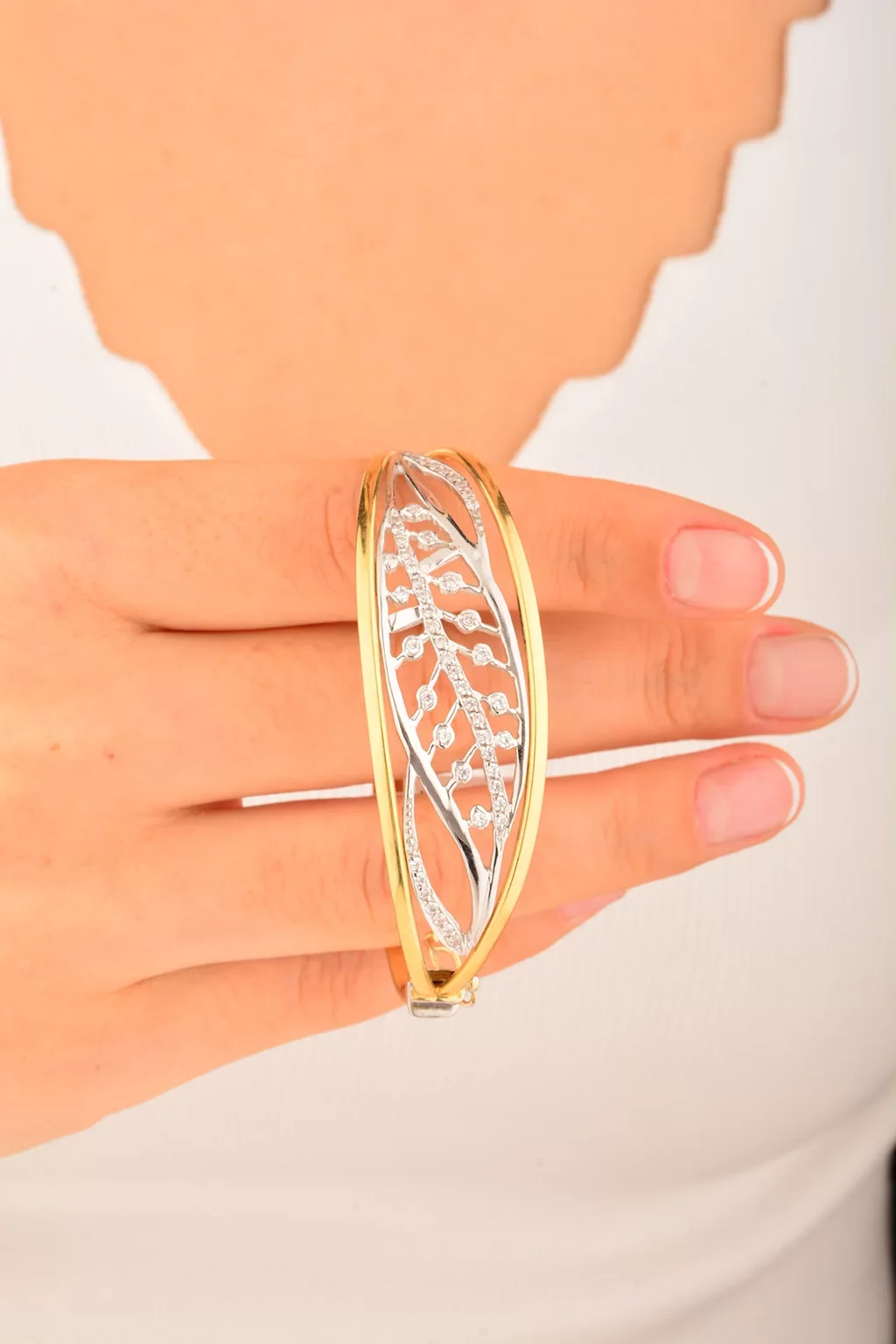 Cebeci 14 Ayar Yapraklı Kelepçeli Altın Bilezik