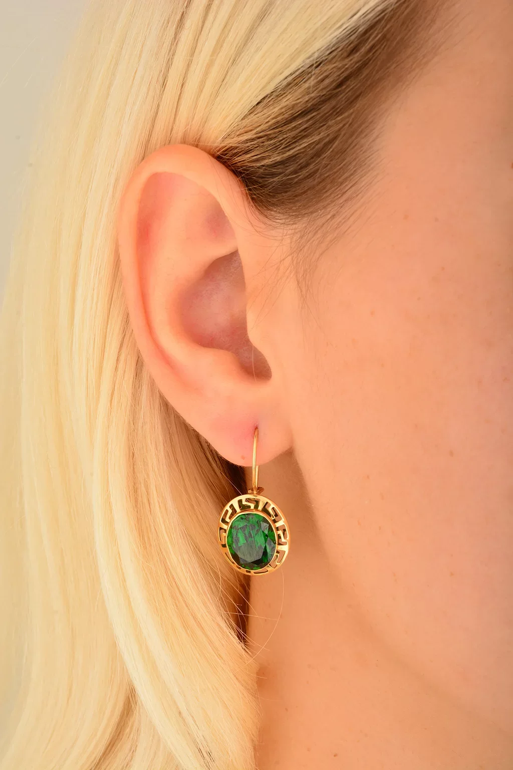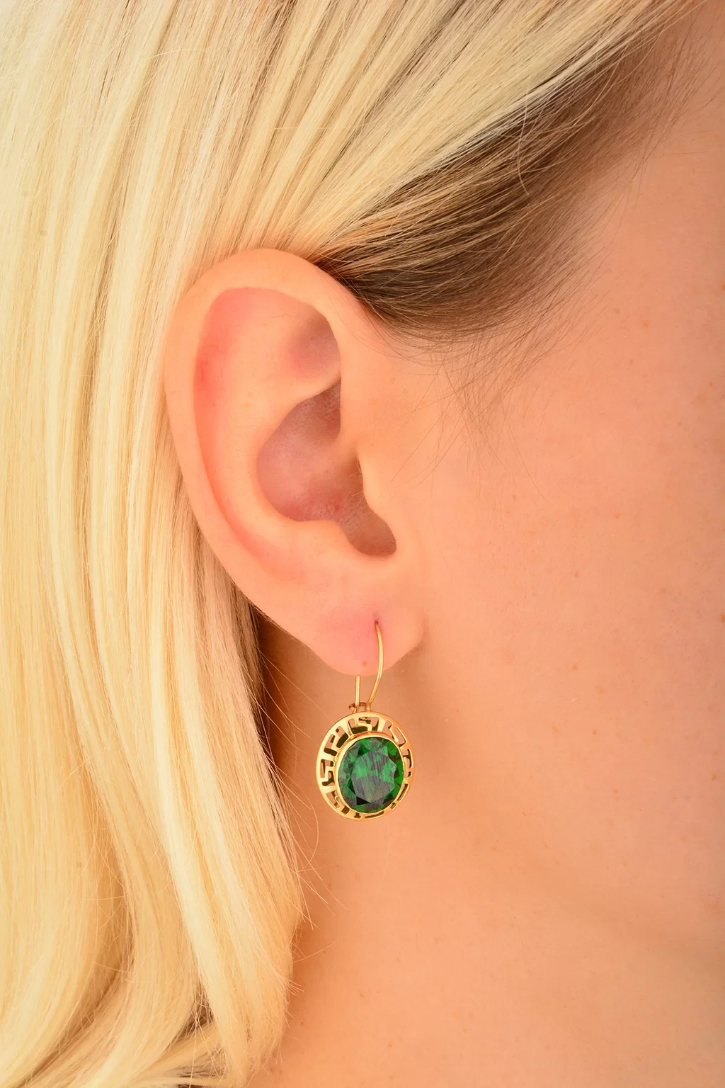Cebeci 14 Ayar Yeşil Taşlı Altın Küpe