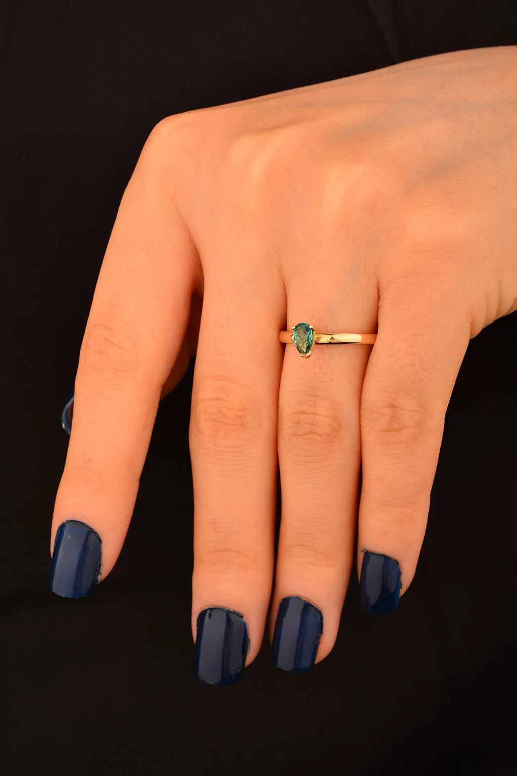 Cebeci 14 Ayar Yeşil Taşlı Yüzük