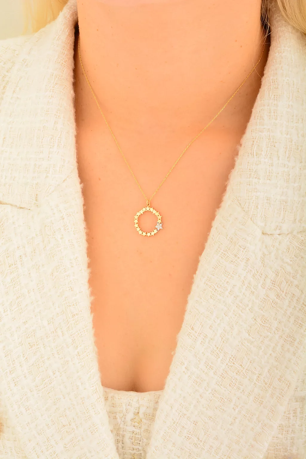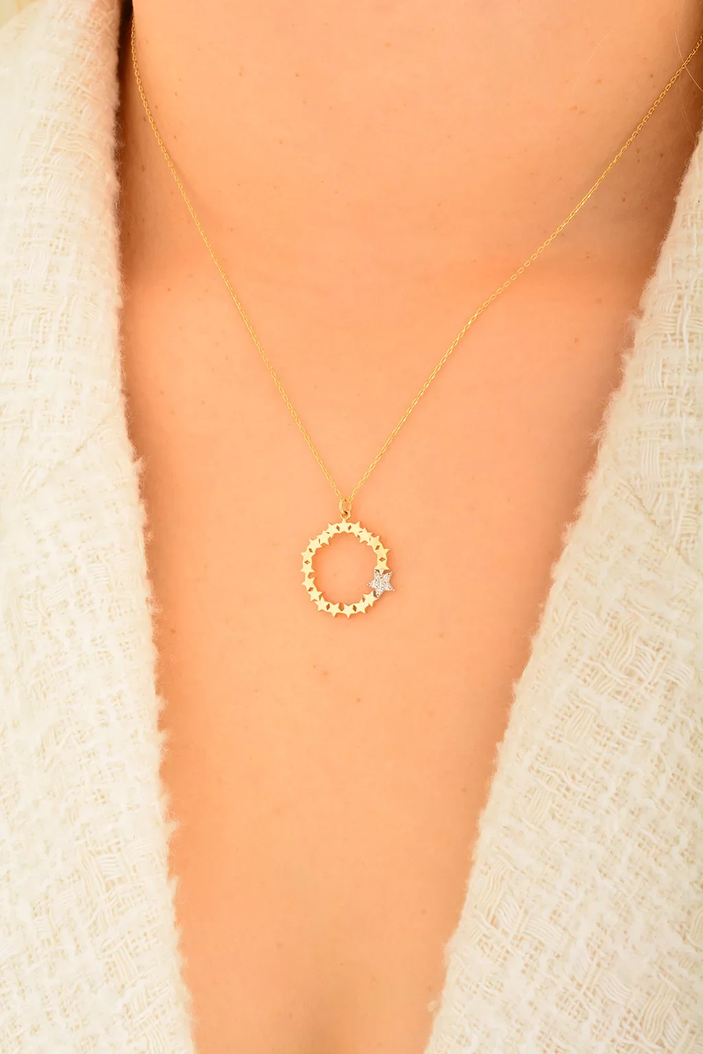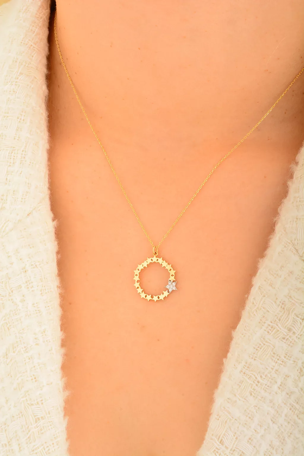 Cebeci 14 Ayar Yıldız Halkalı Altın Kolye