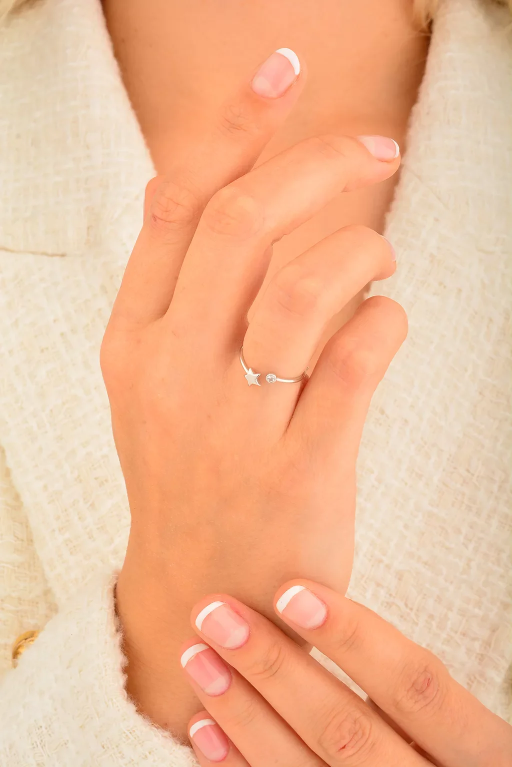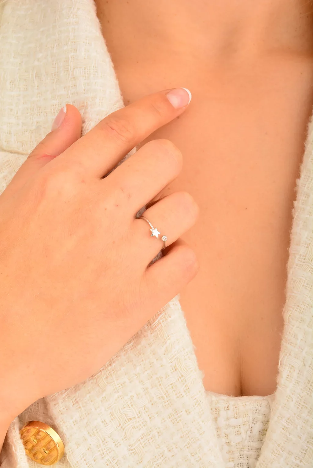 Cebeci 14 Ayar Yıldız Kelepçe Beyaz Altın Yüzük