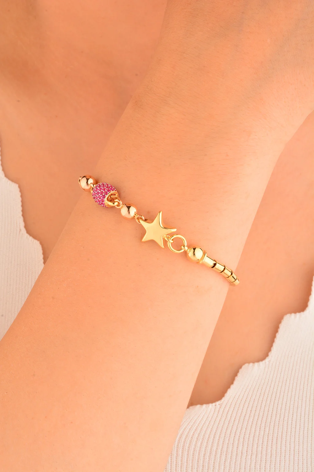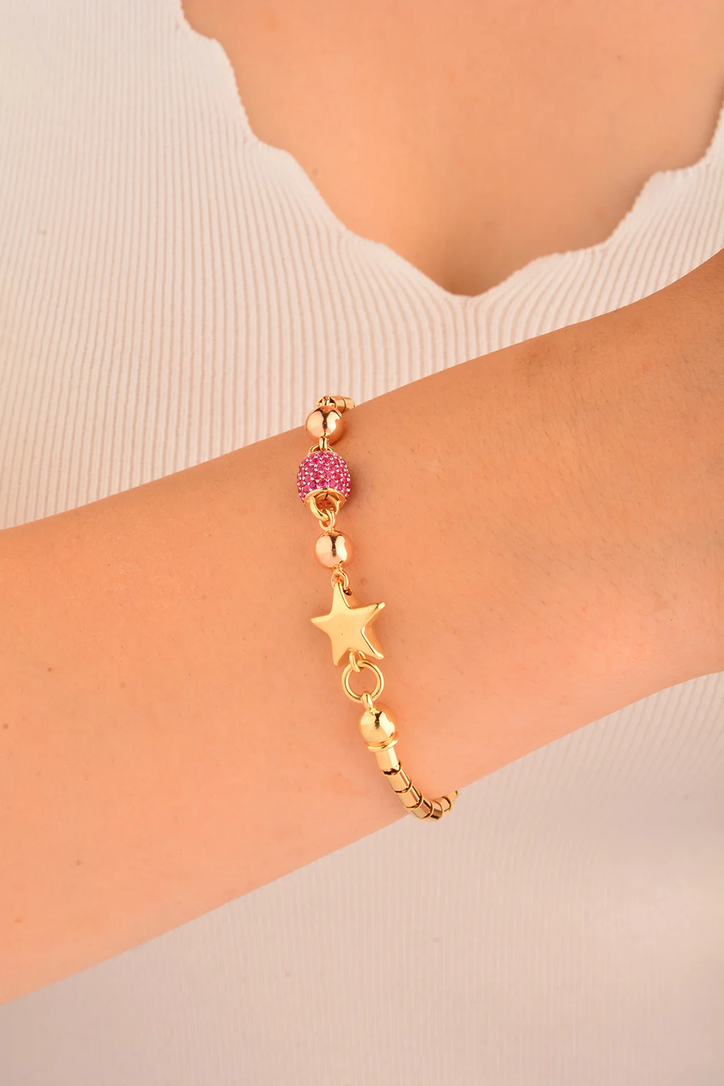 Cebeci 14 Ayar Yıldızlı Top Altın Bileklik