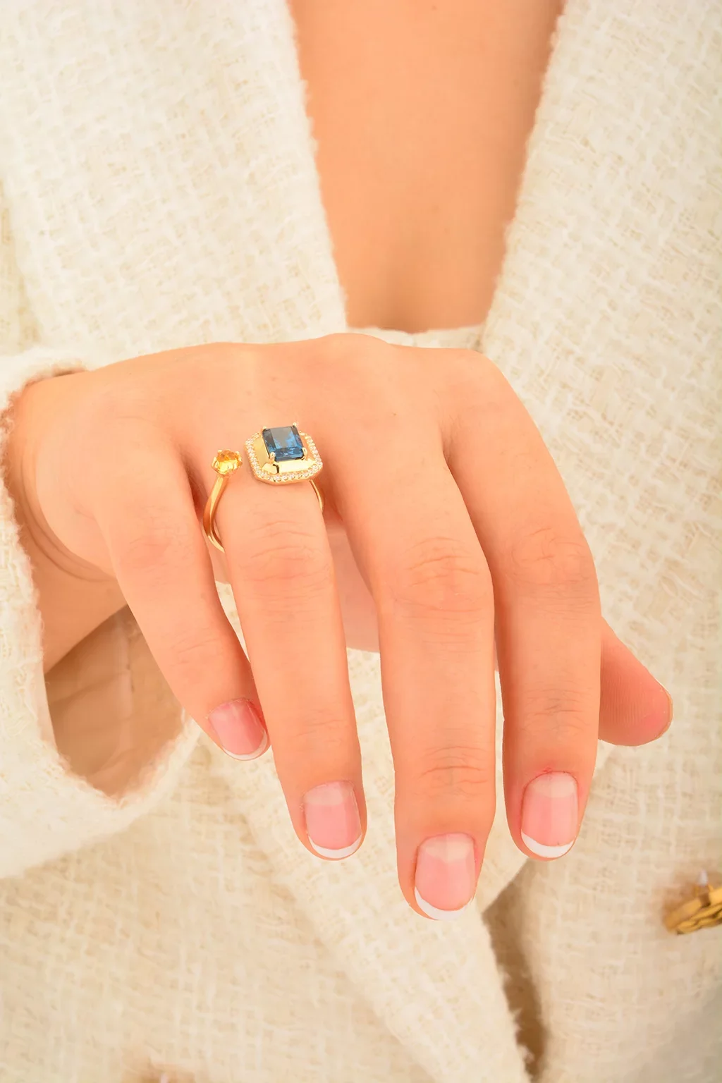 Cebeci 14 Ayar Renkli Taşlı Altın Yüzük