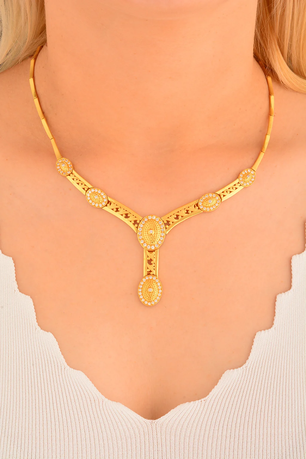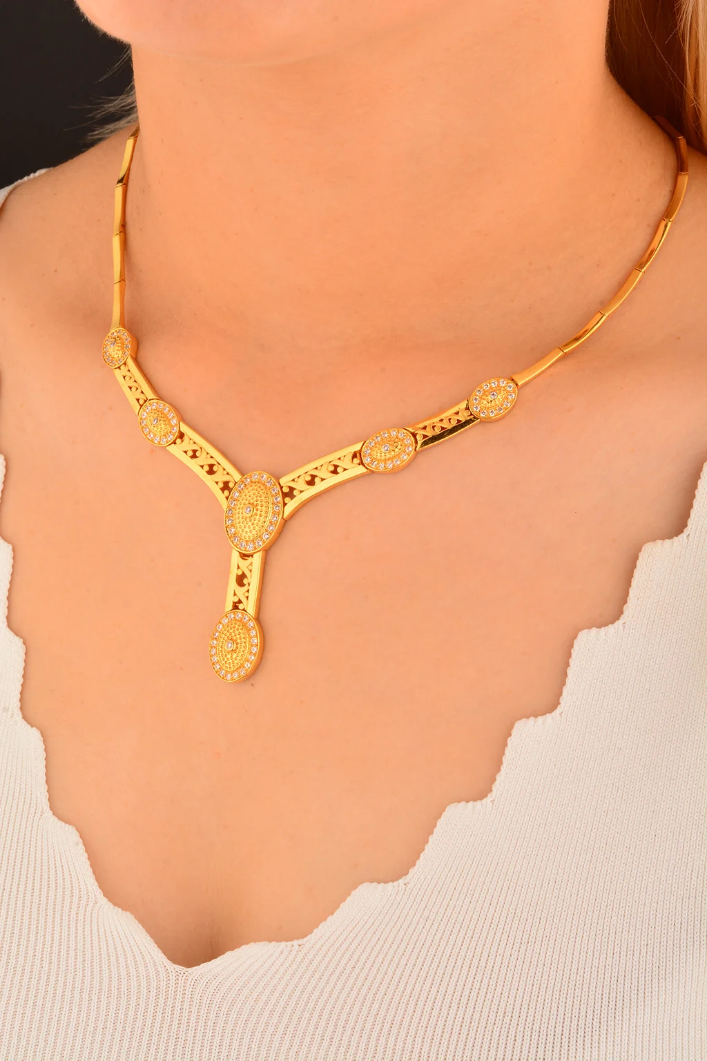 Cebeci 22 Ayar Taşlı Altın Gerdanlık