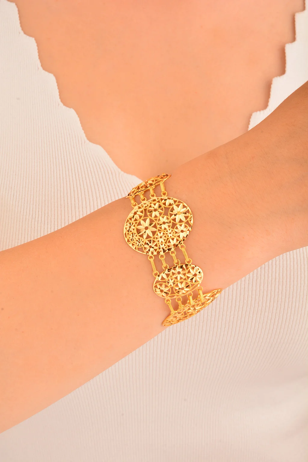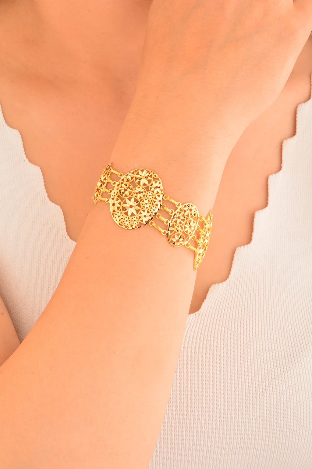 Cebeci 22 Ayar Çiçek İşlemeli Altın Bileklik