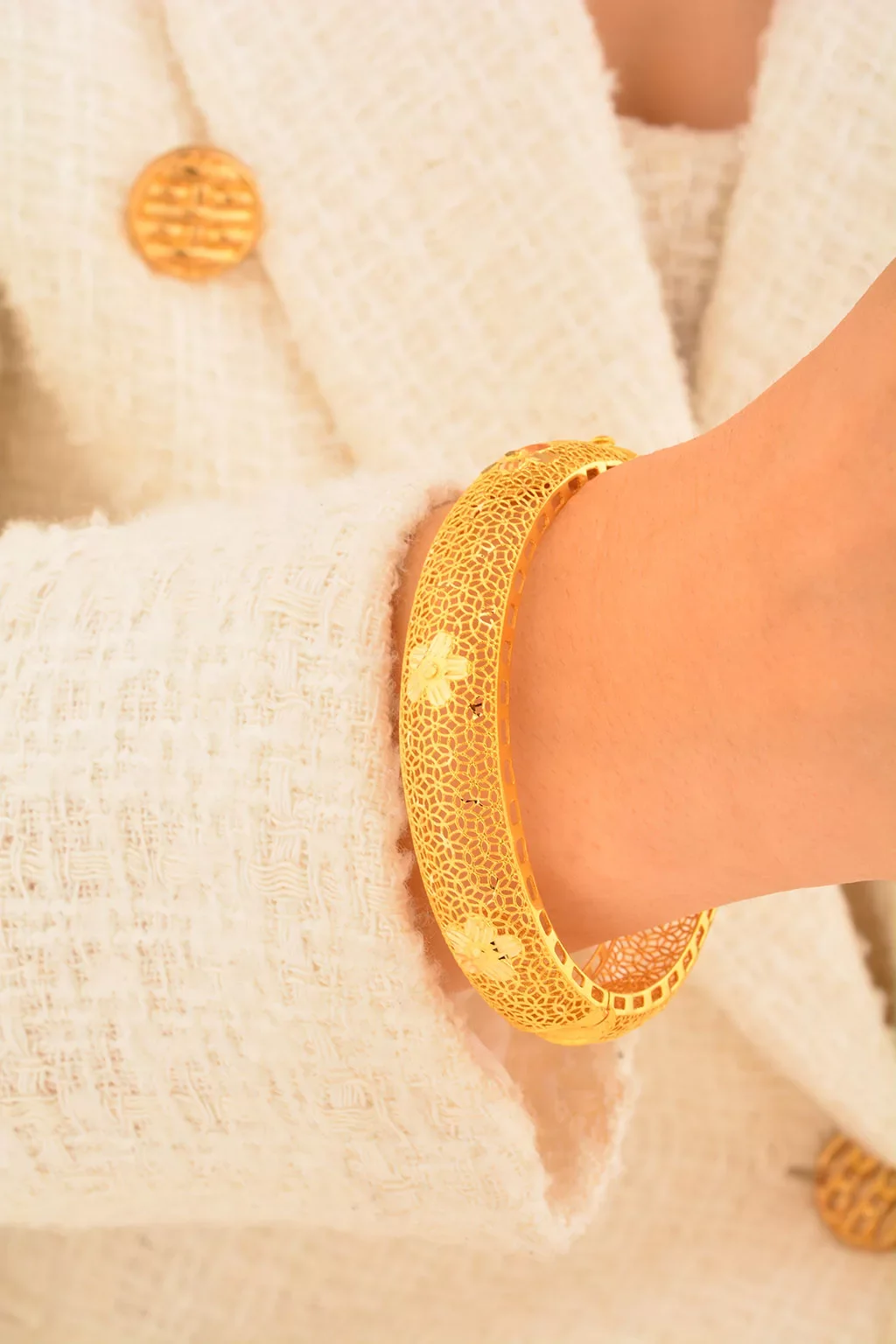 Cebeci 22 Ayar Çiçek Kabartmalı Kelepçe Altın Bilezik