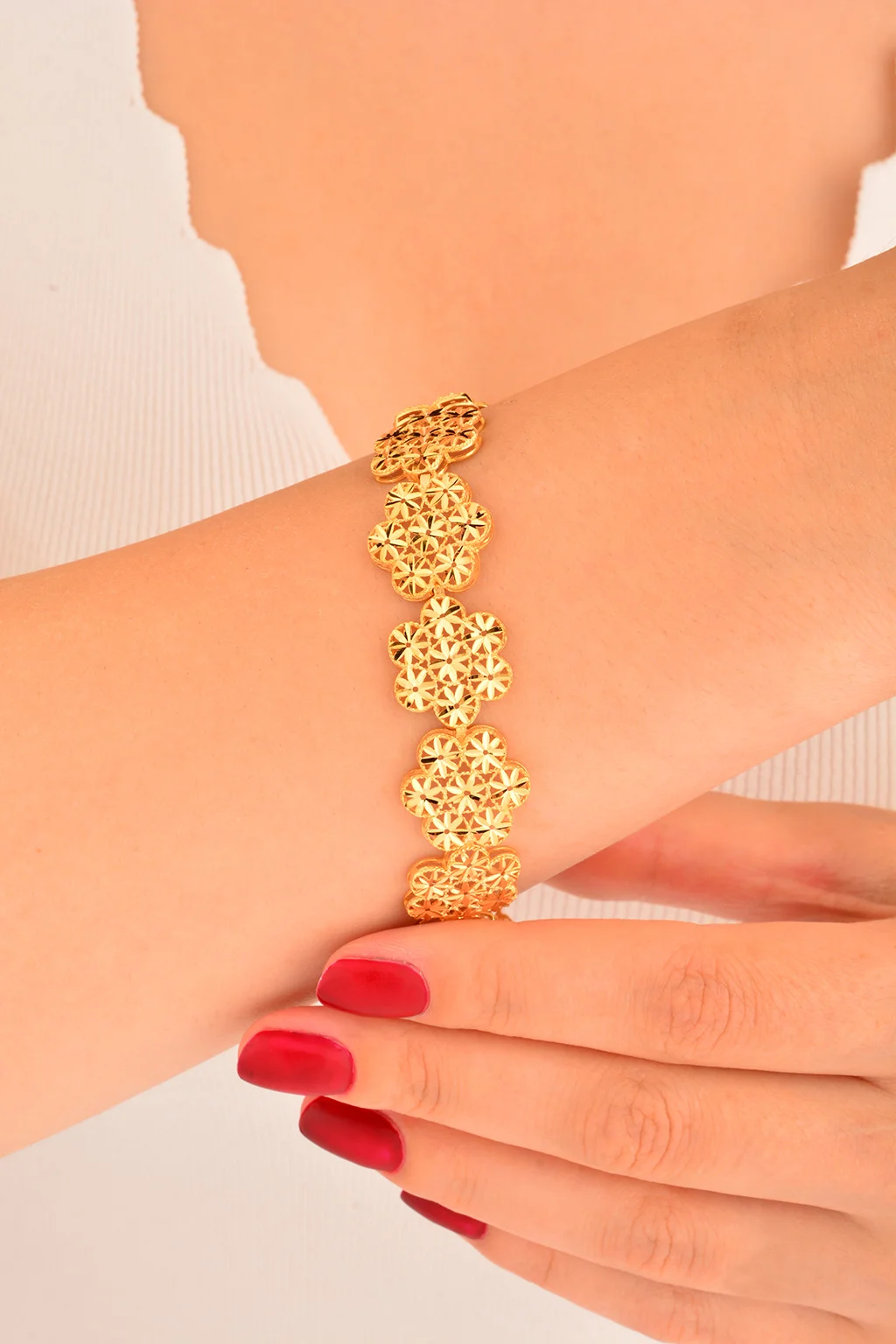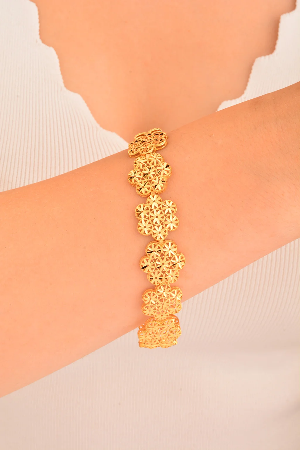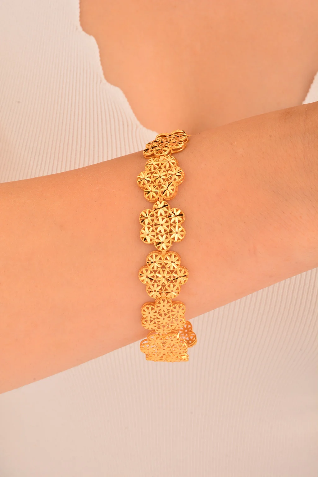 Cebeci 22 Ayar İşlemeli Çiçekli Altın Bileklik