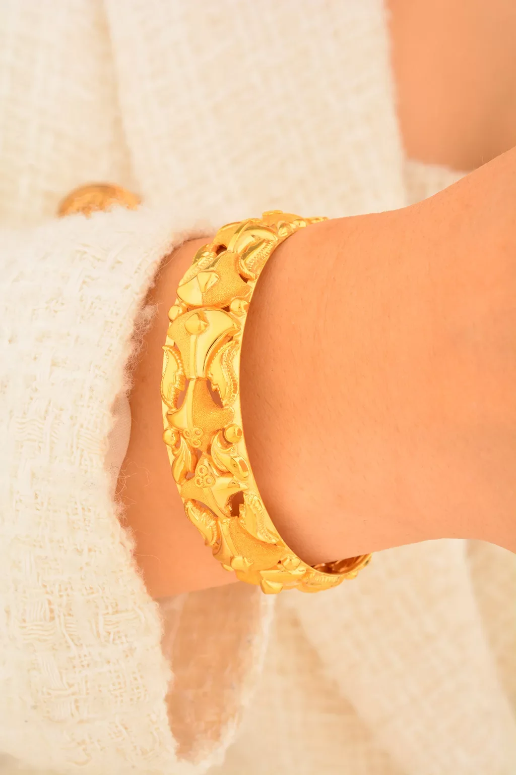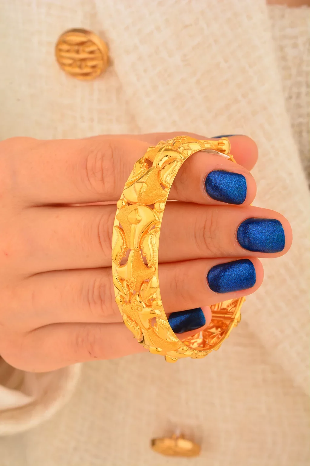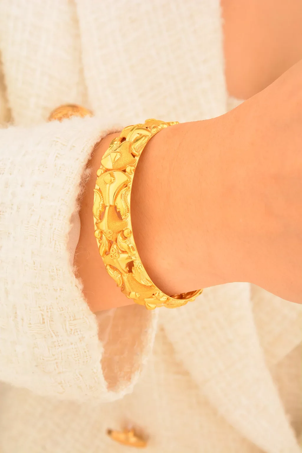 Cebeci 22 Ayar Kabartmalı Kelepçe Altın Bilezik