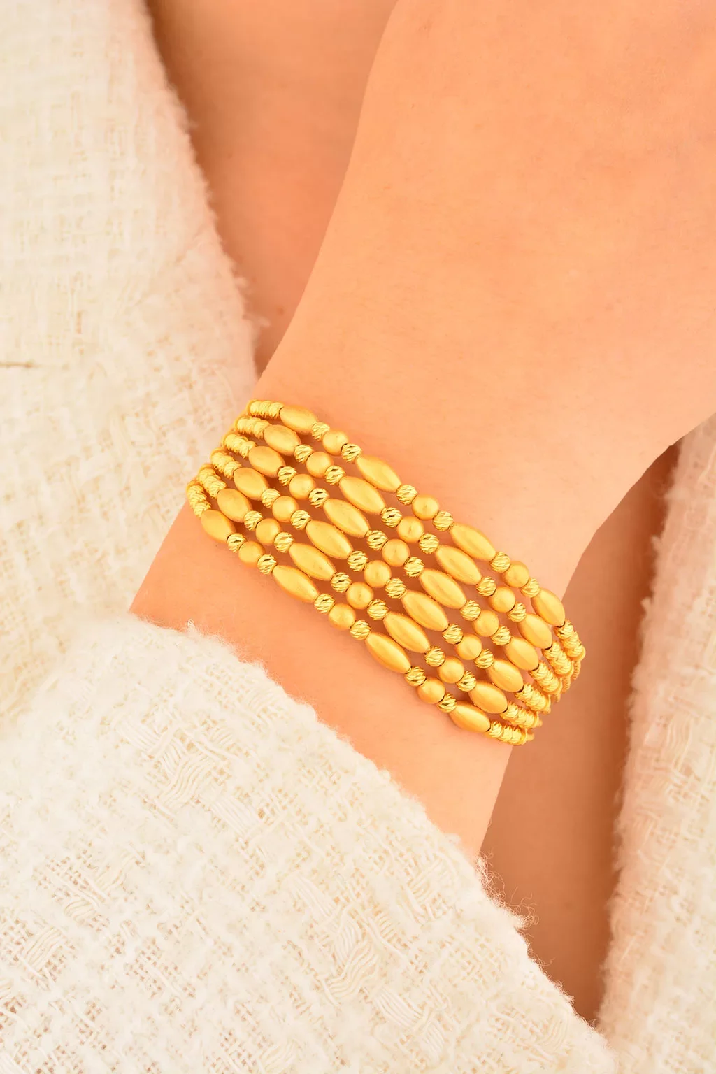 Cebeci 22 Ayar Mat Boncuk Altı Sıra Kelepçe Altın Bilezik