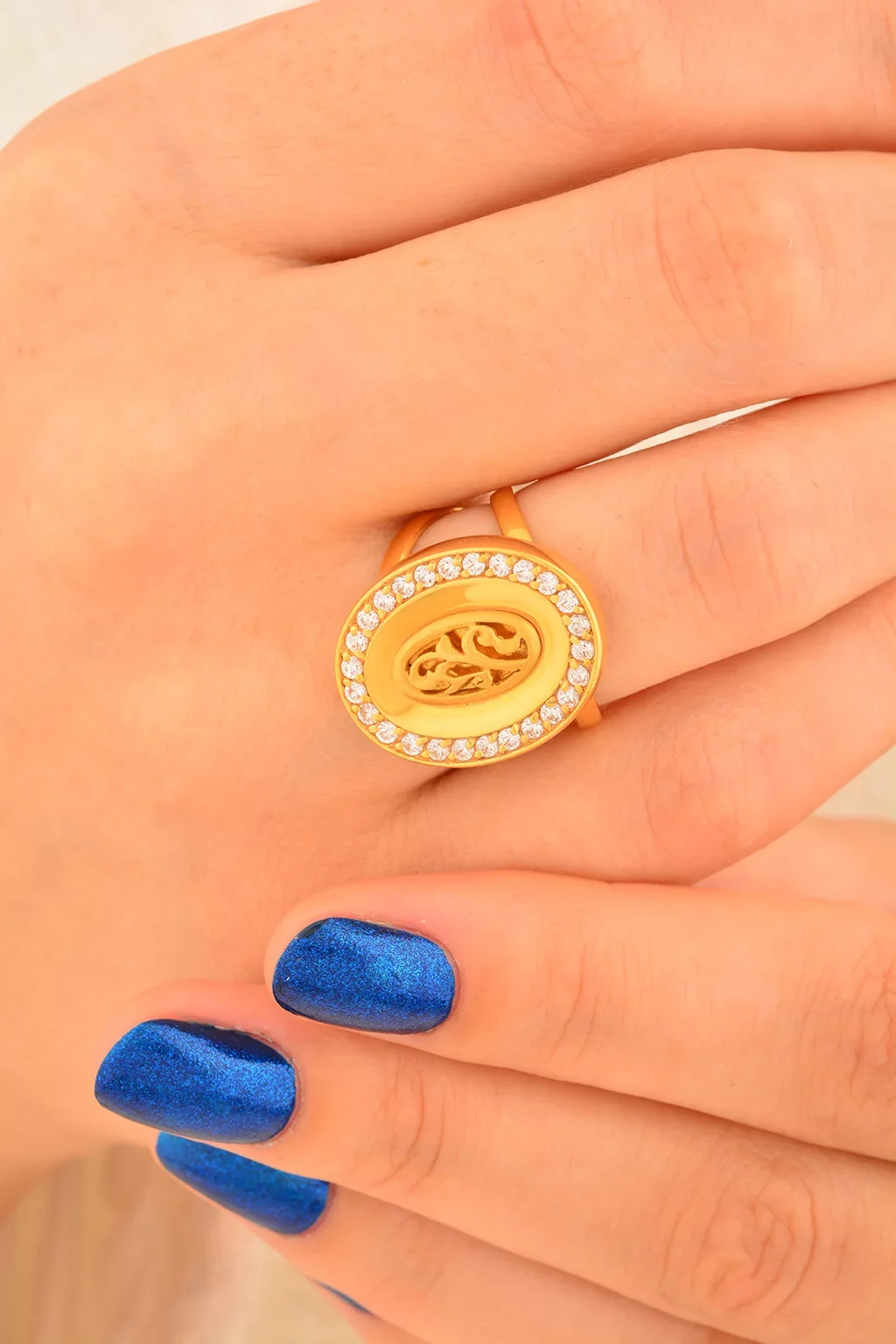 Cebeci 22 Ayar Taşlı Oval Altın Yüzük