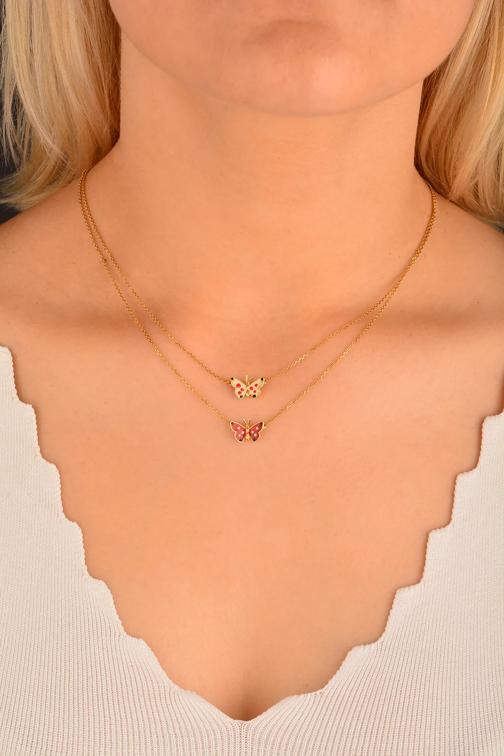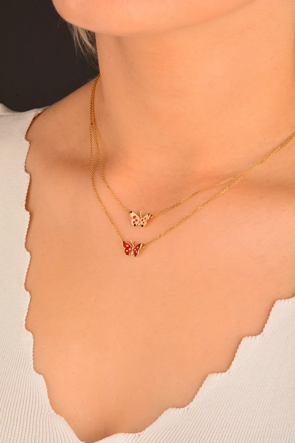 Cebeci 14 Ayar Çift Kelebekli Altın Kolye