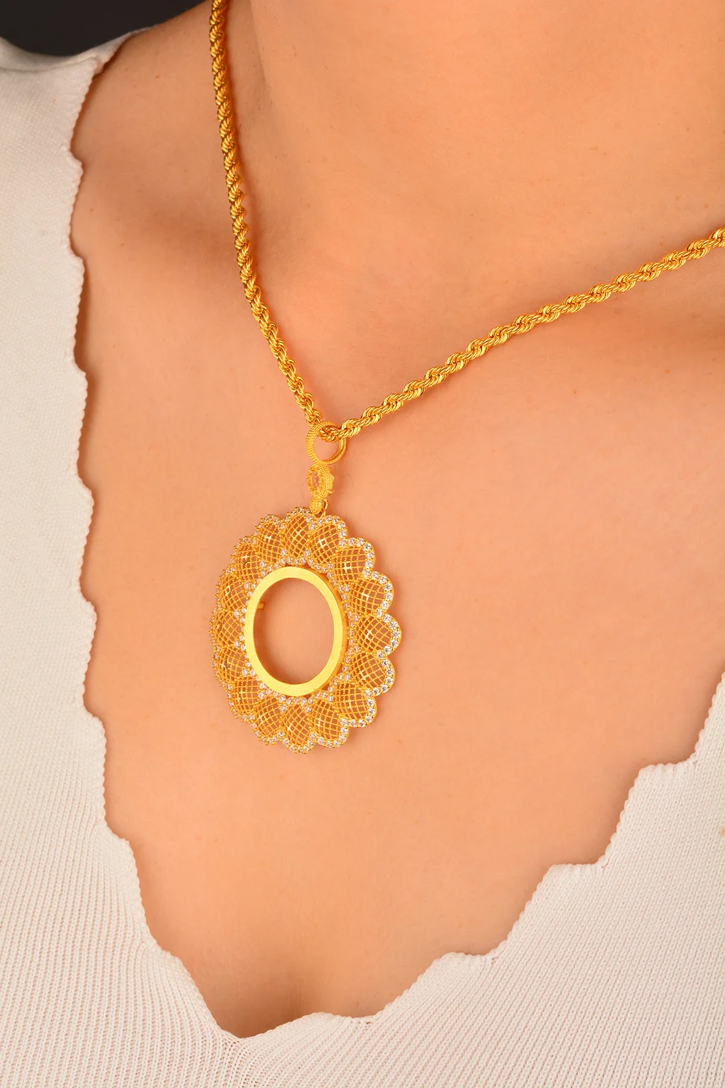 Cebeci 14 Ayar Taşlı Çerçeveli Altın Kolye Ucu