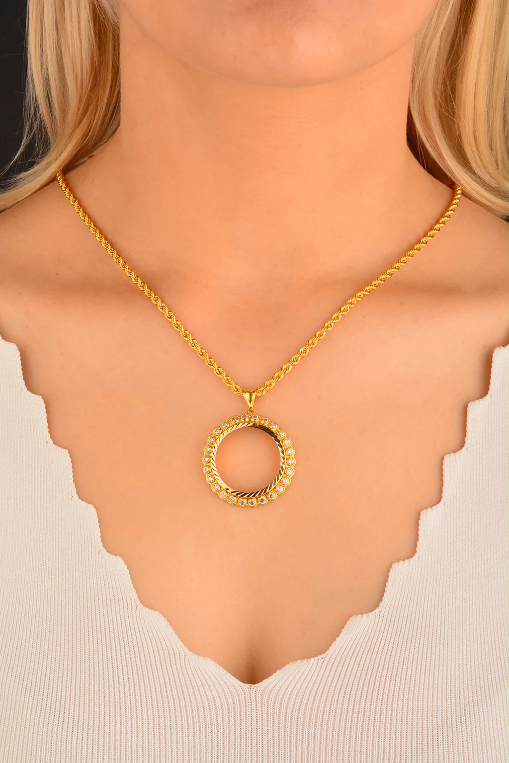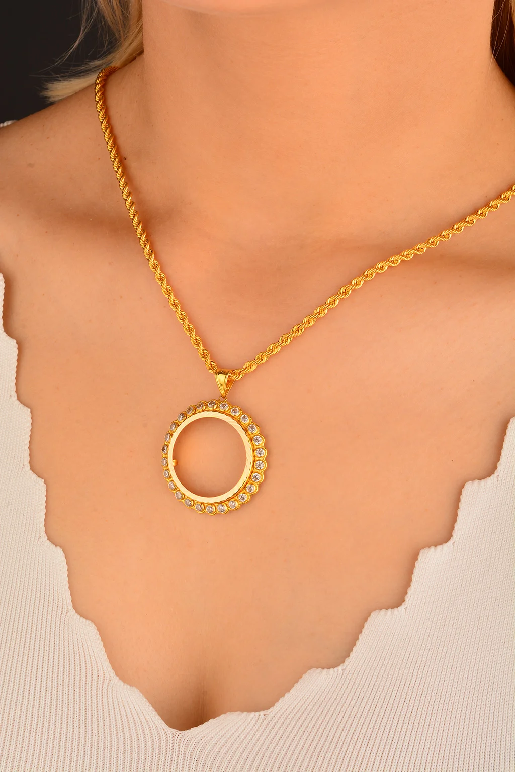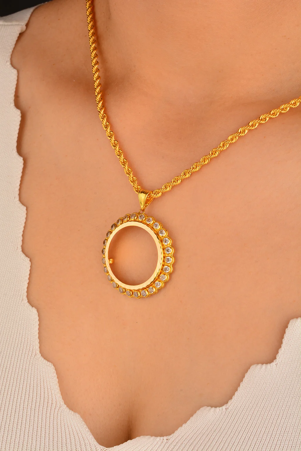 Cebeci 14 Ayar Taşlı Çerçeve Altın Kolye Ucu