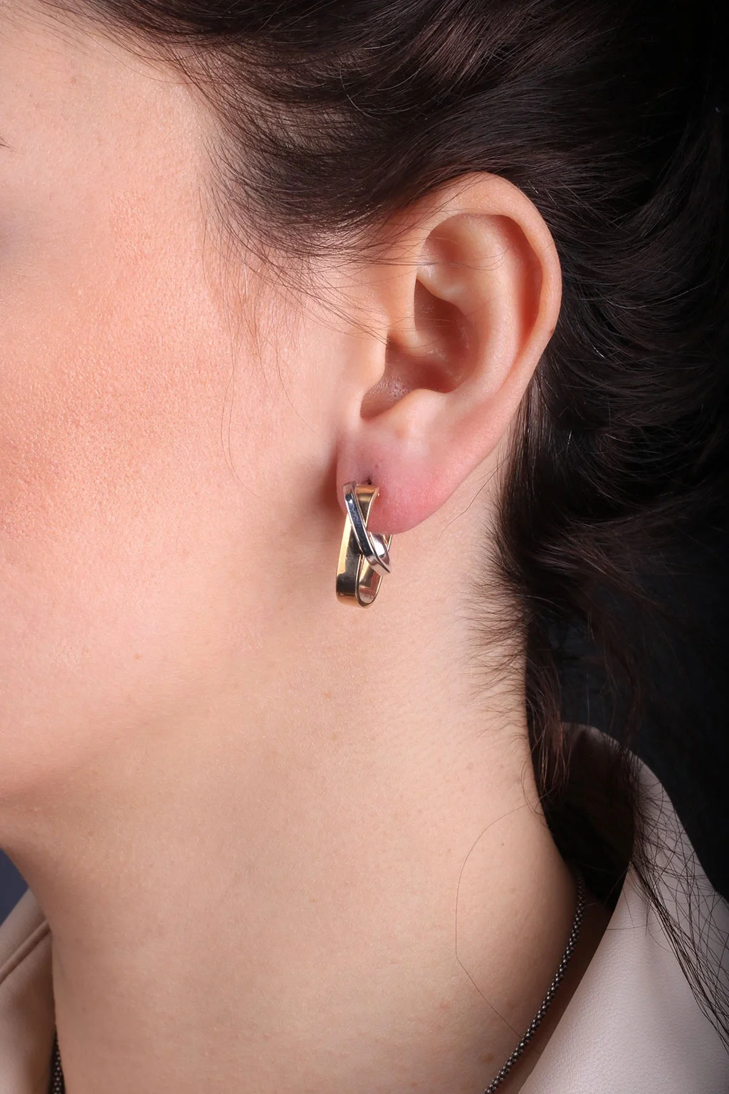 Cebeci 14 Ayar Çift Renk Sarmal Kare Altın Küpe
