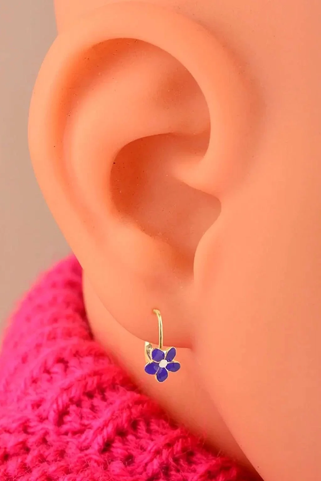 Cebeci 14 Ayar Mor Çiçekli Altın Çocuk Küpesi