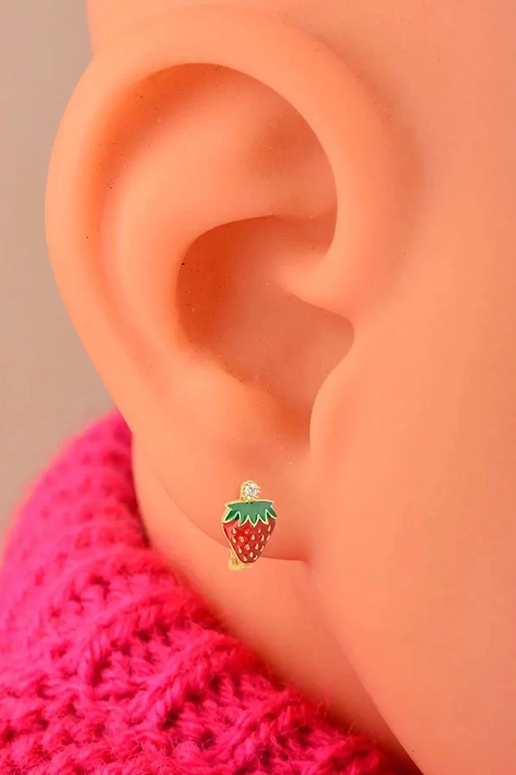 Cebeci 14 Ayar Çilekli Altın Çocuk Küpe
