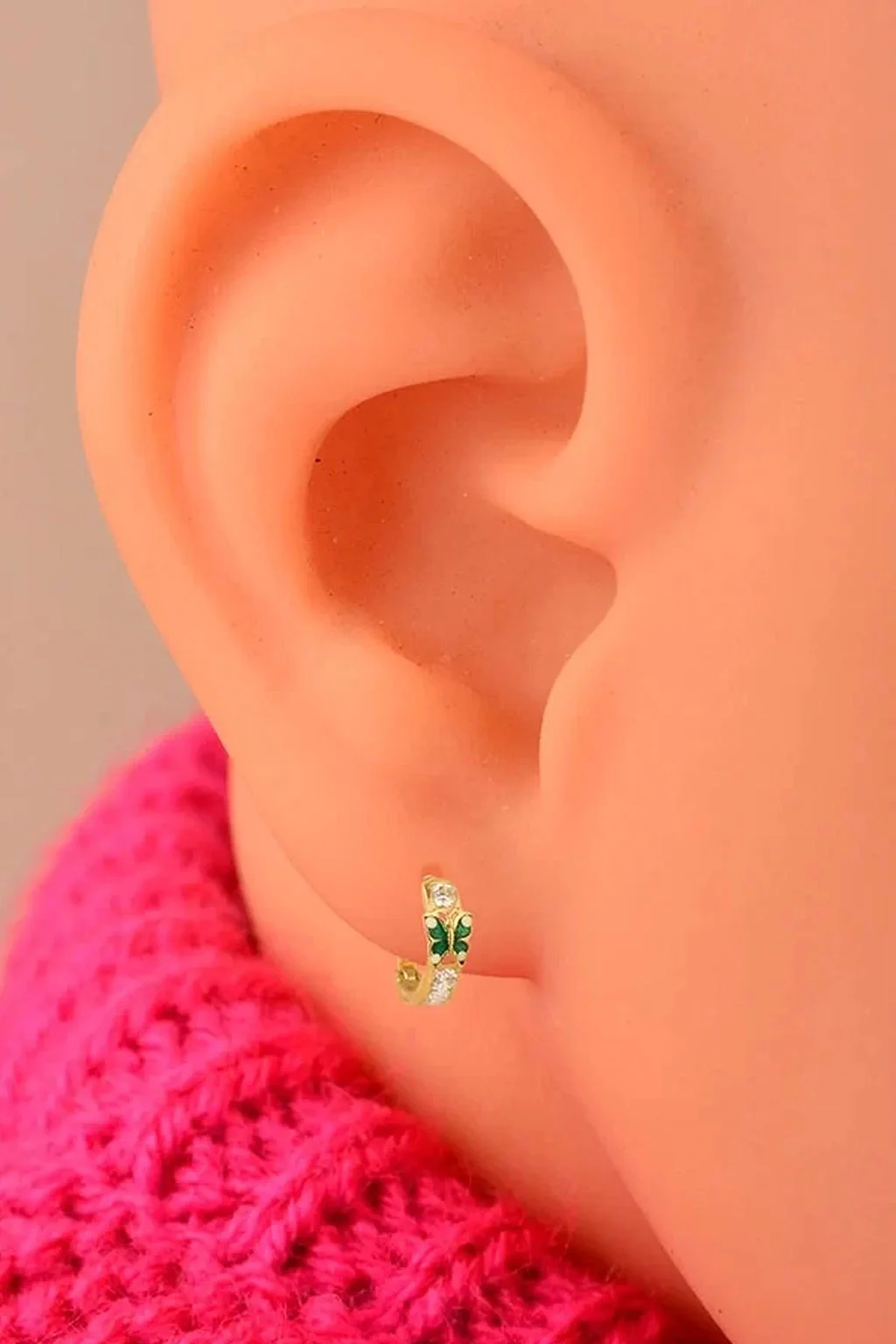 Cebeci 14 Ayar Yeşil Kelebekli Çocuk Altın Küpe