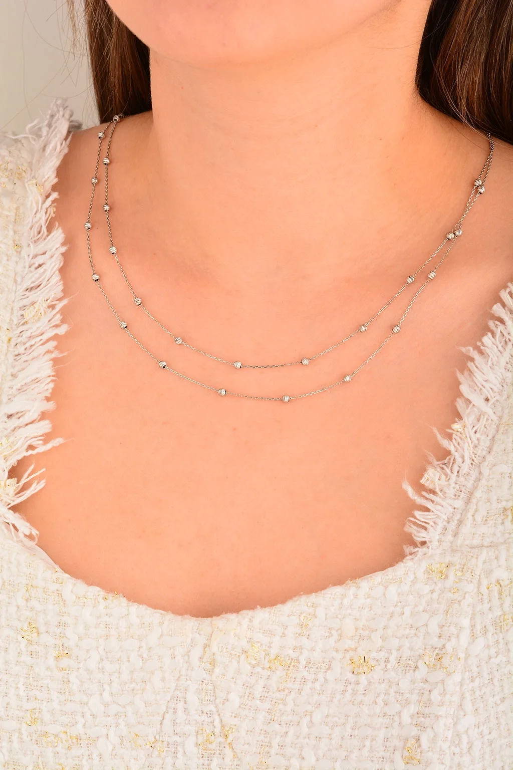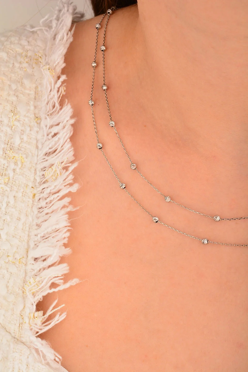 Cebeci 14 Ayar Dorika Toplu Beyaz Altın Kolye