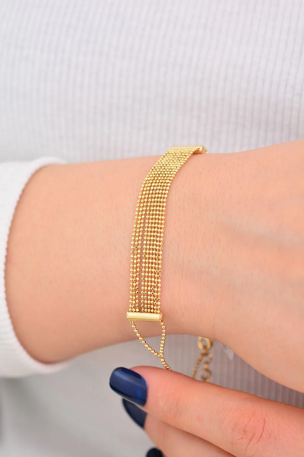 Cebeci 14 Ayar İnce Boncuklu Altın Bileklik