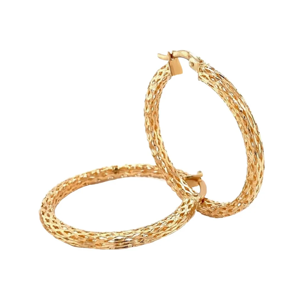 Cebeci 14 Ayar İşlemeli Halka Altın Küpe
