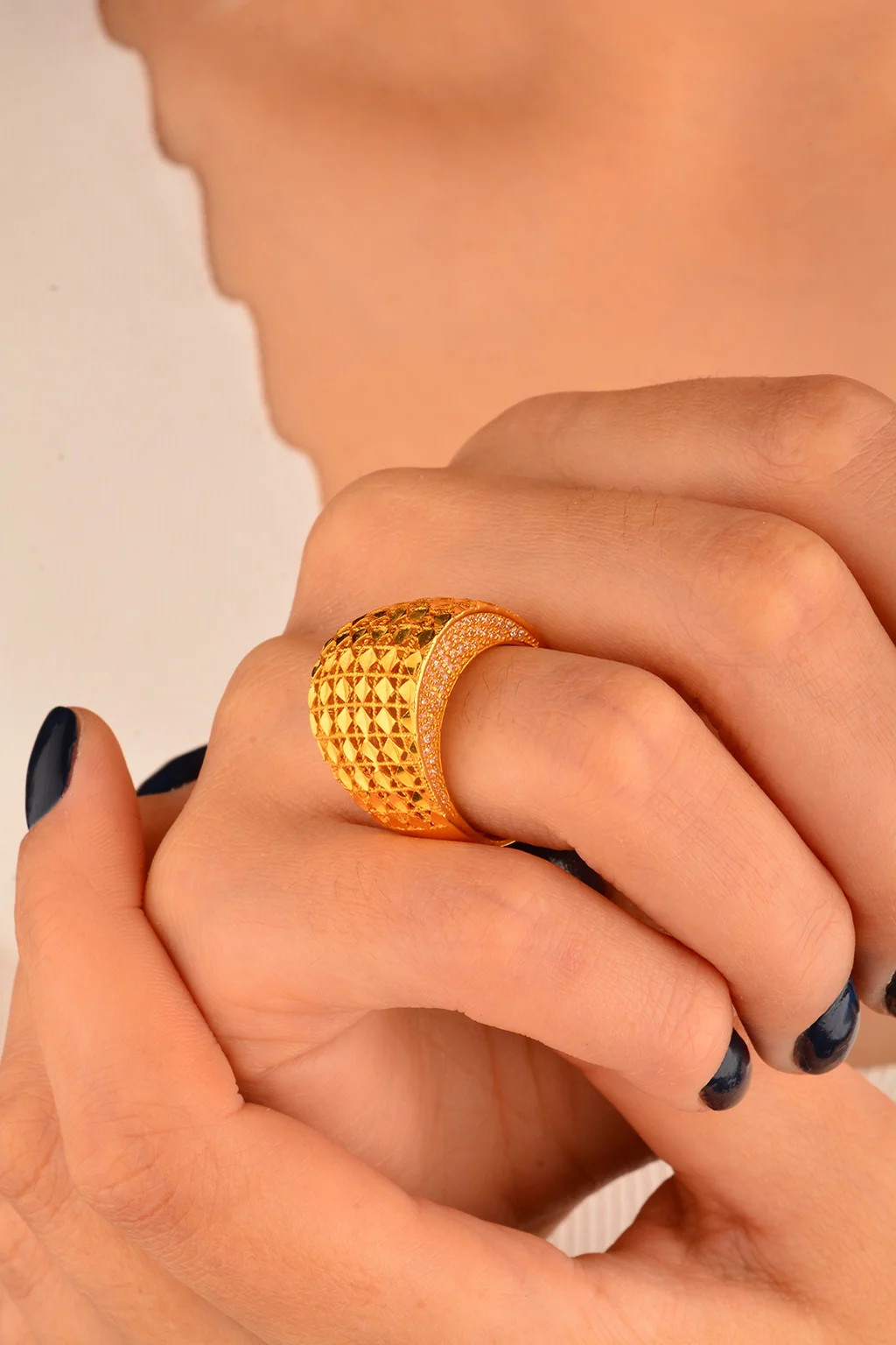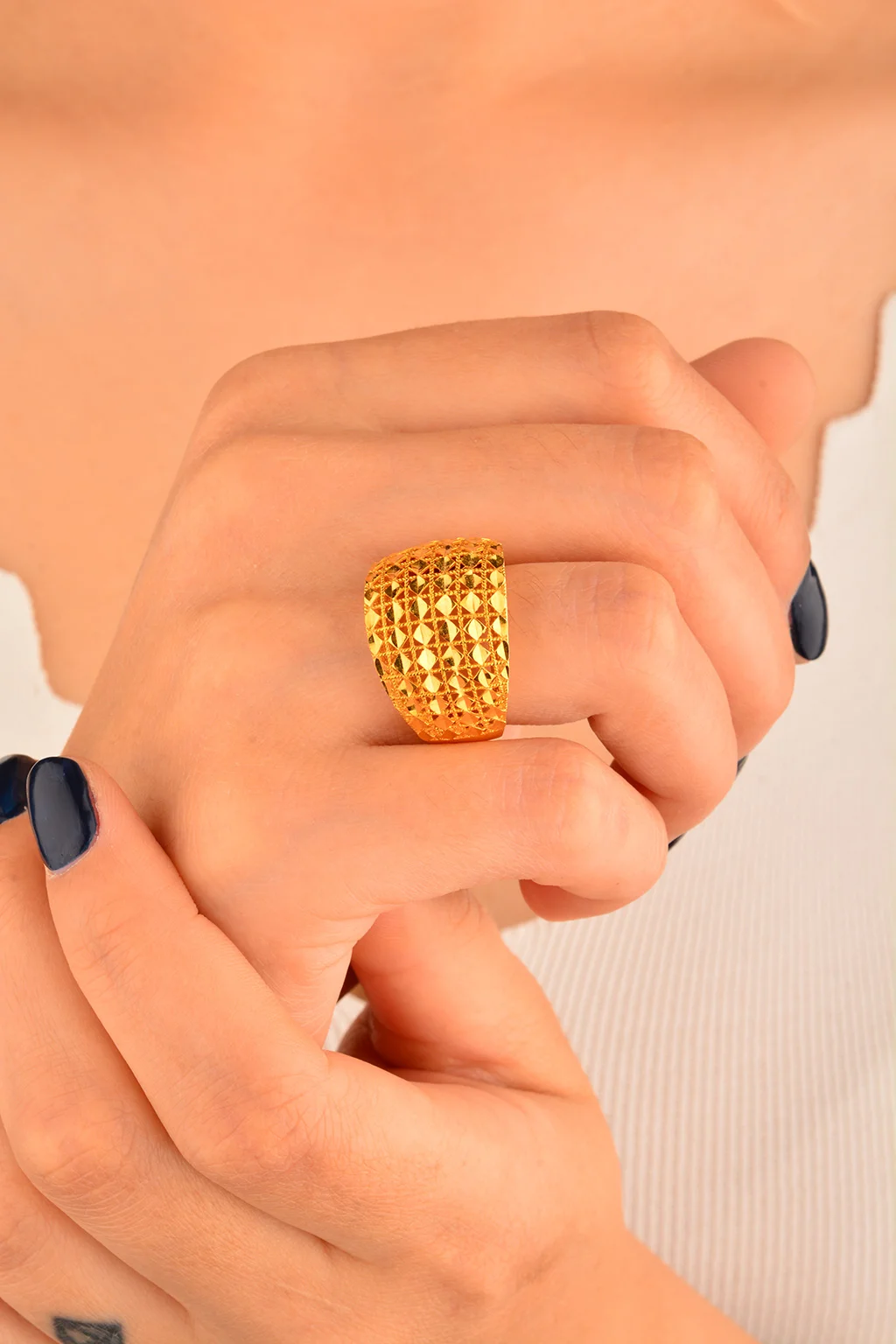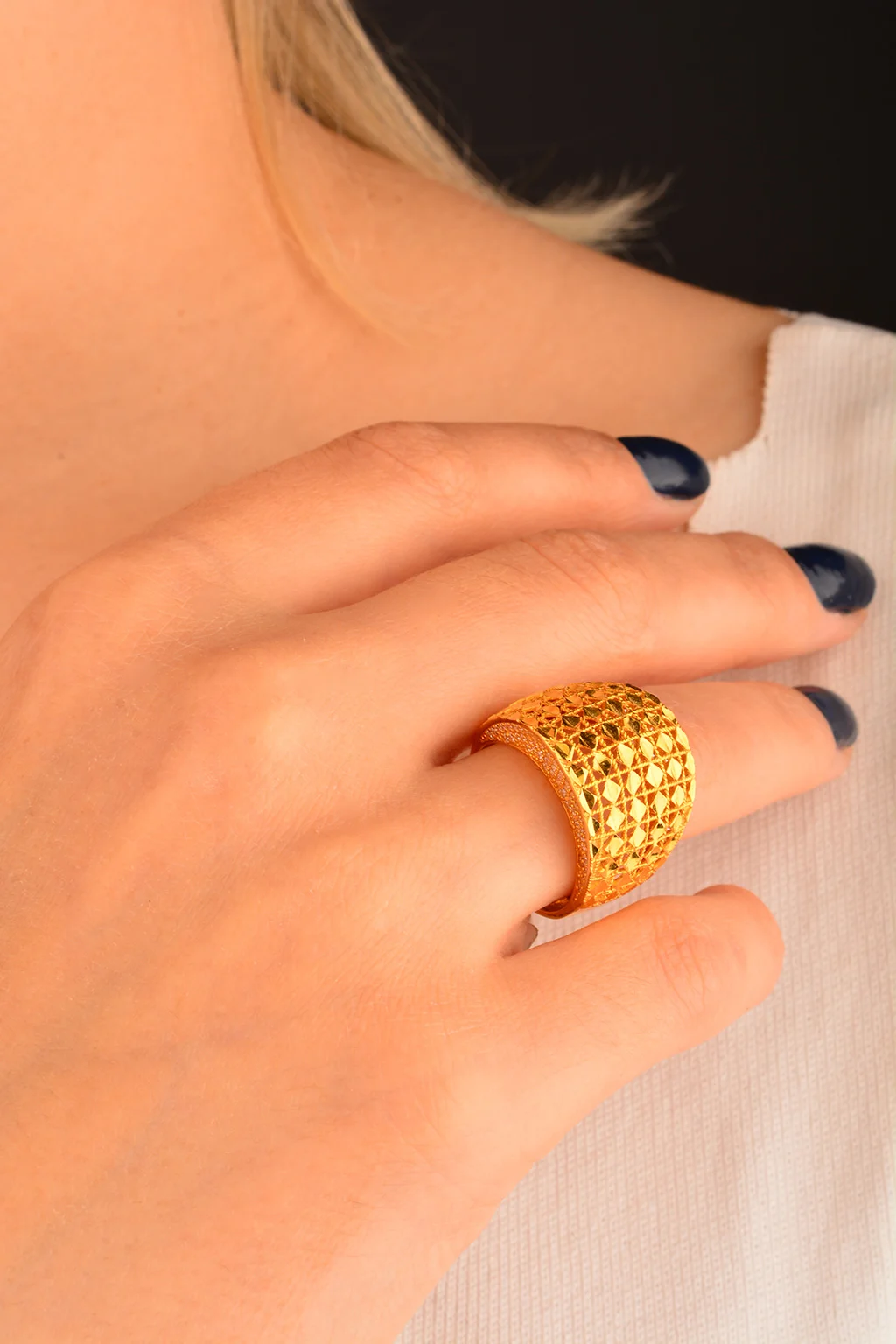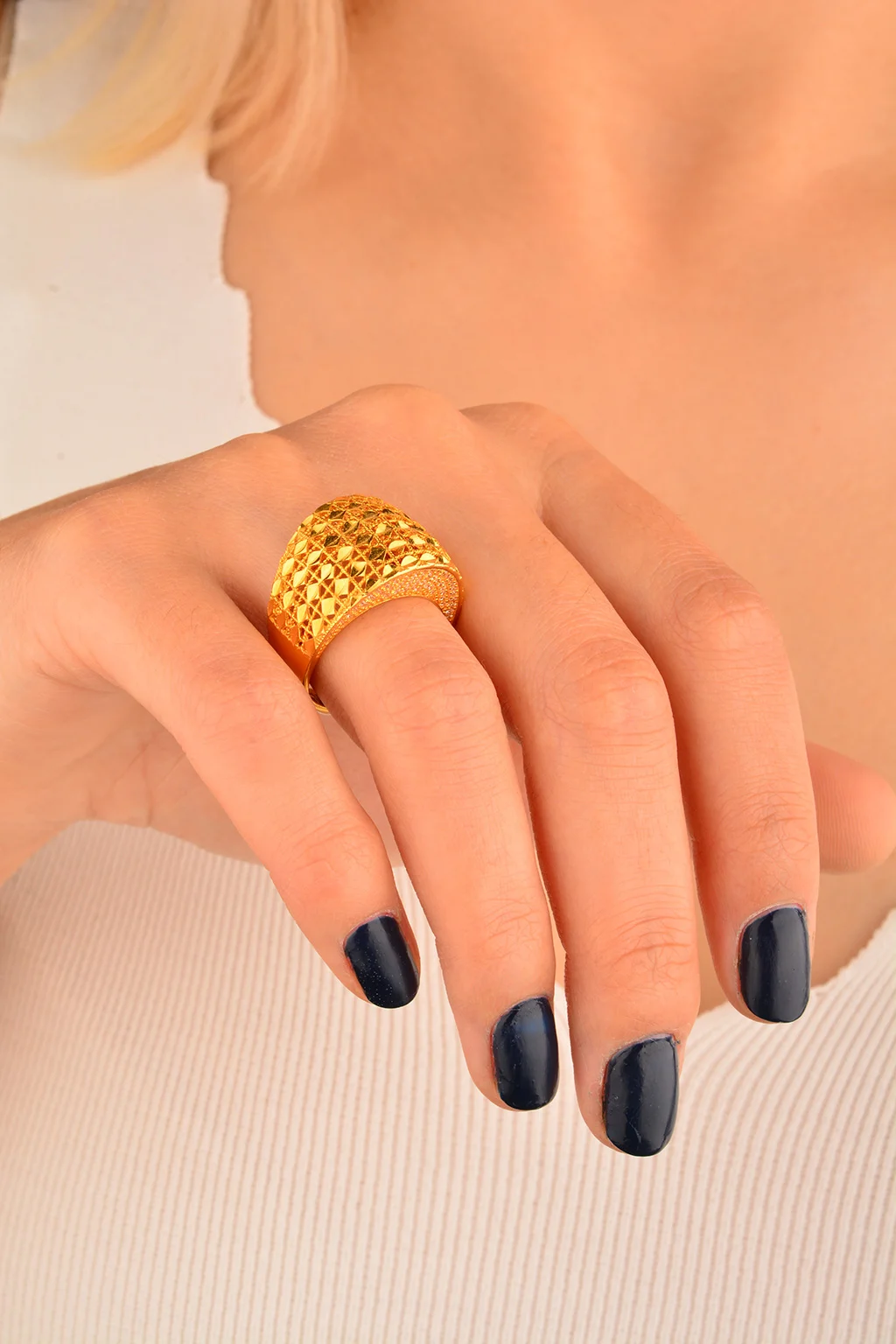 Cebeci 22 Ayar İşlemeli Taşlı Altın Yüzük