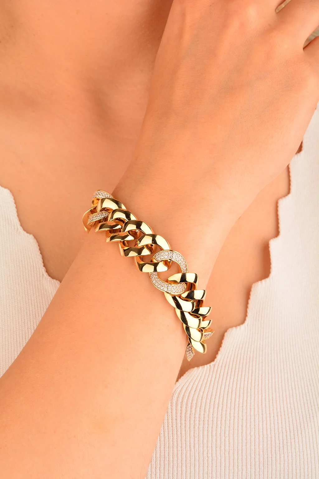Cebeci 14 Ayar Taşlı Zincir Altın Bileklik