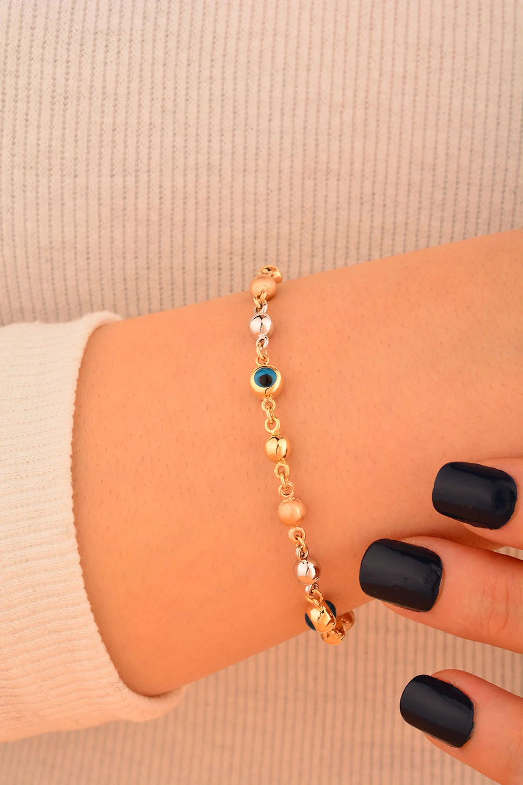 Cebeci 14 Ayar Göz Boncuklu Altın Bileklik