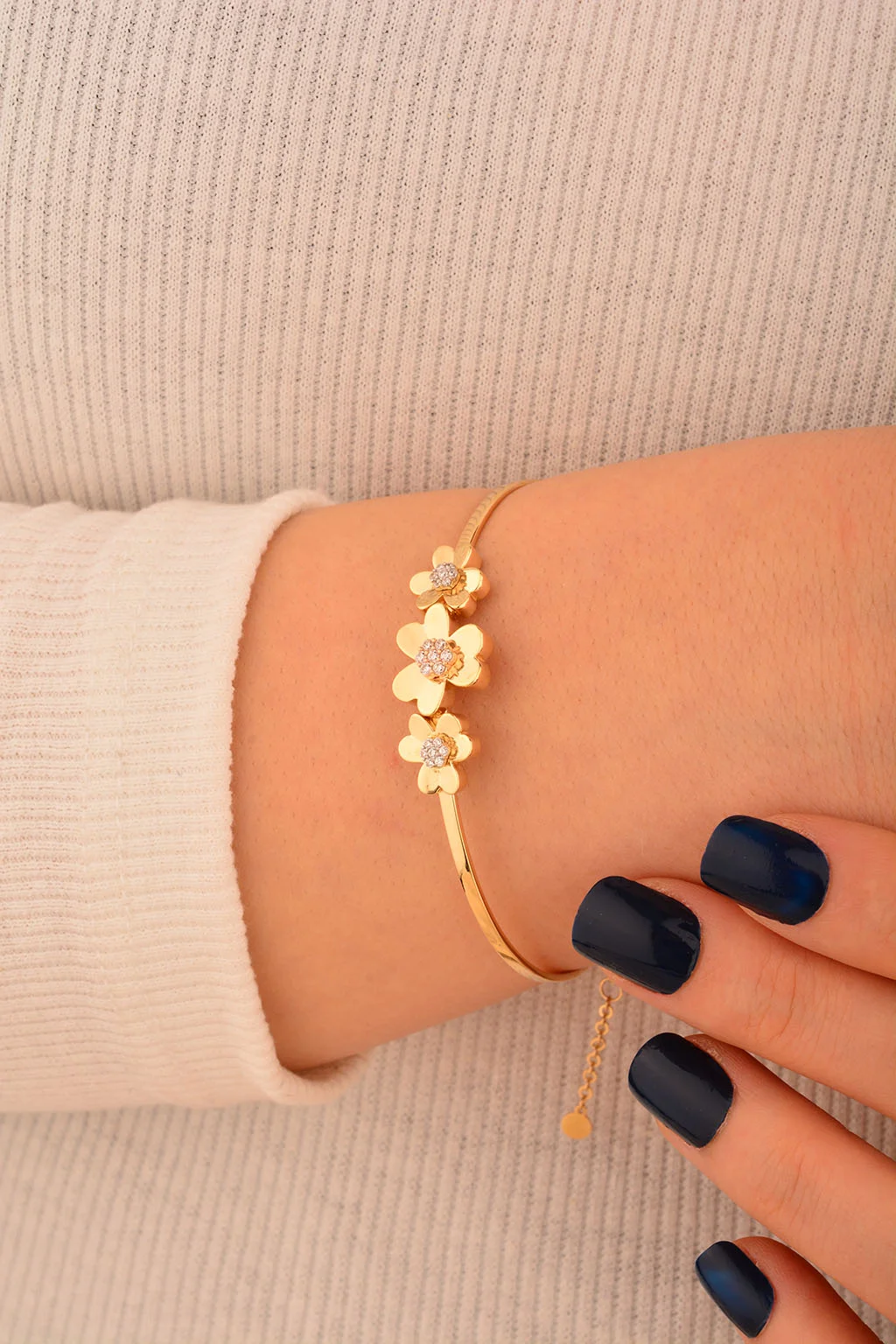 Cebeci 14 Ayar Papatya Kelepçeli Altın Bileklik