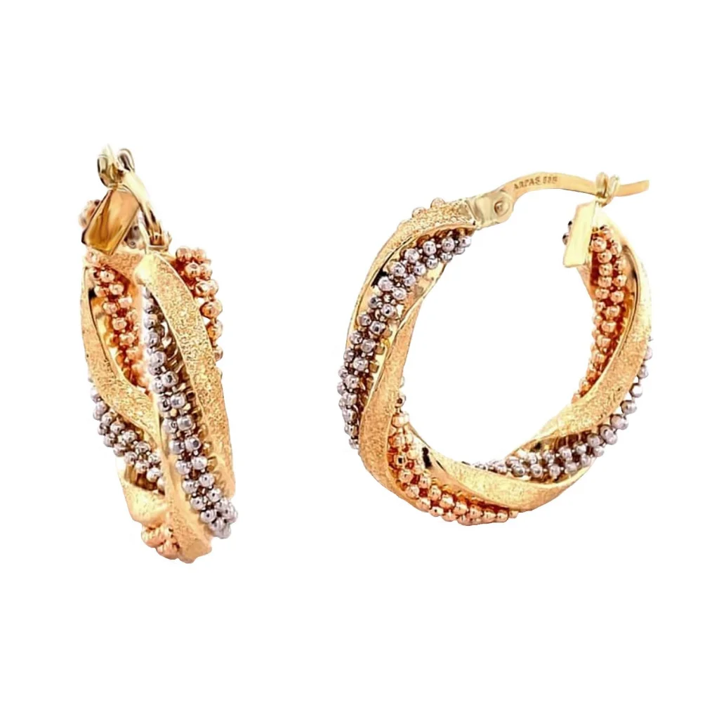 Cebeci 14 Ayar Renkli Boncuklu Halka Altın Küpe