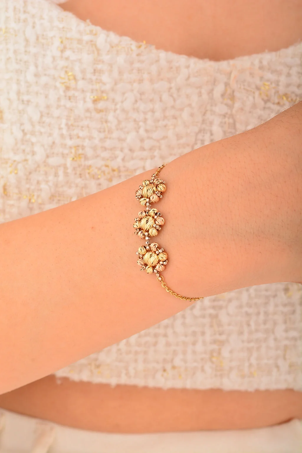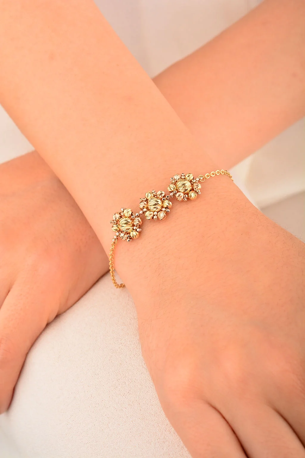 Cebeci 14 Ayar Dorika Çiçekli Altın Bileklik