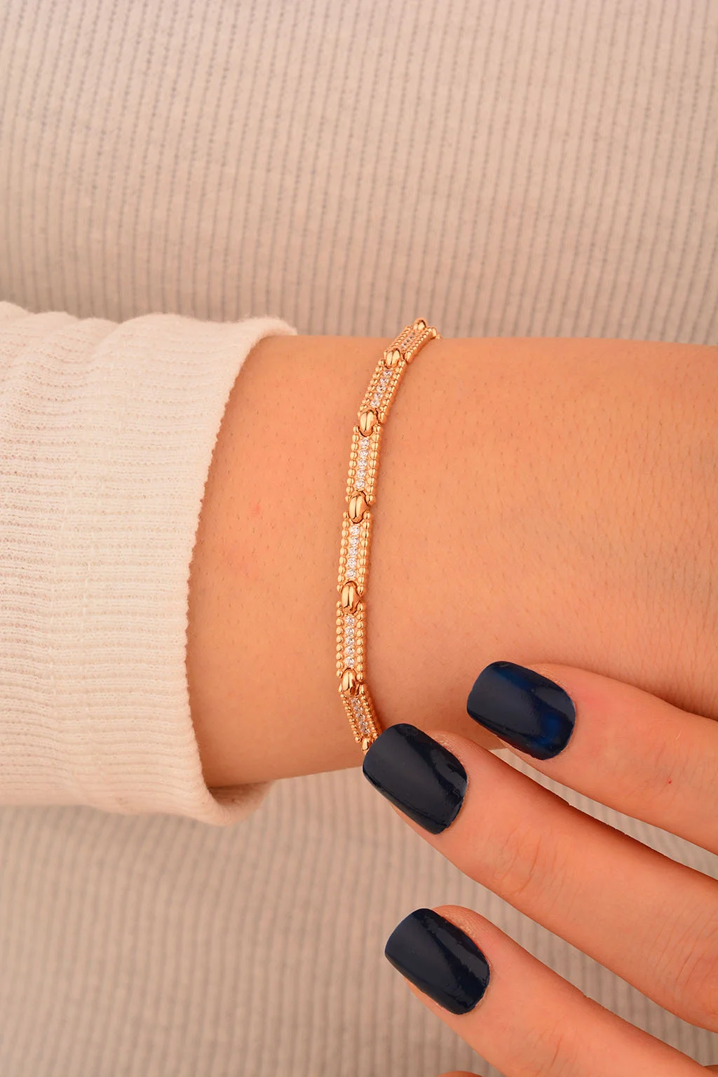 Cebeci 14 Ayar Rose Taşlı Altın Bileklik