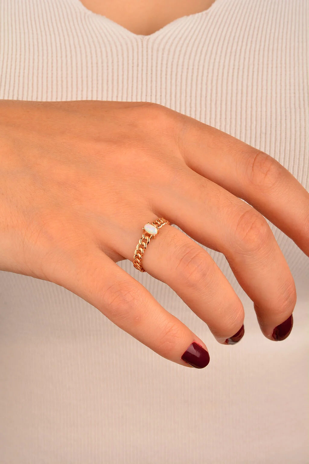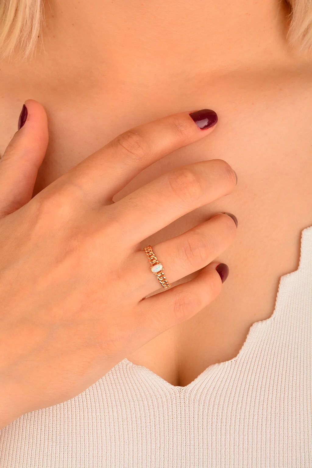 Cebeci 14 Ayar Rose Sedef Taşlı Altın Yüzük