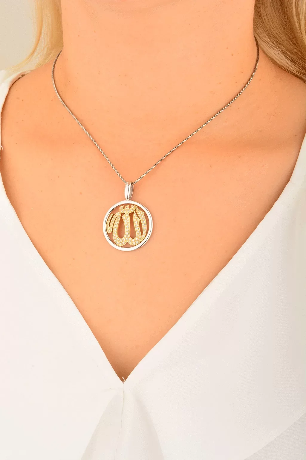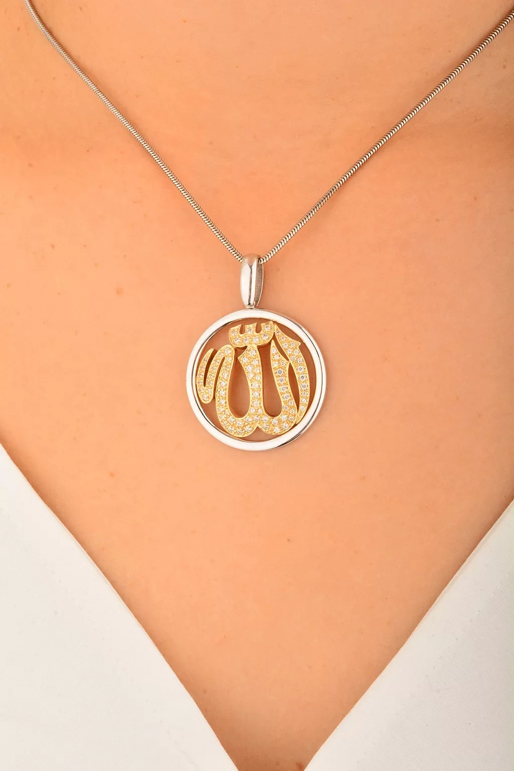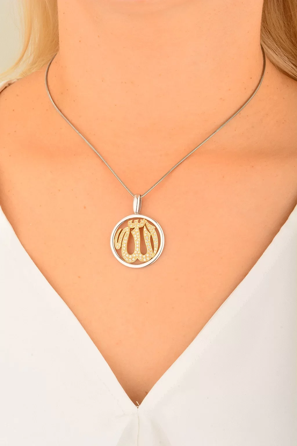 Cebeci 14 Ayar Allah Taşlı Altın Kolye Ucu
