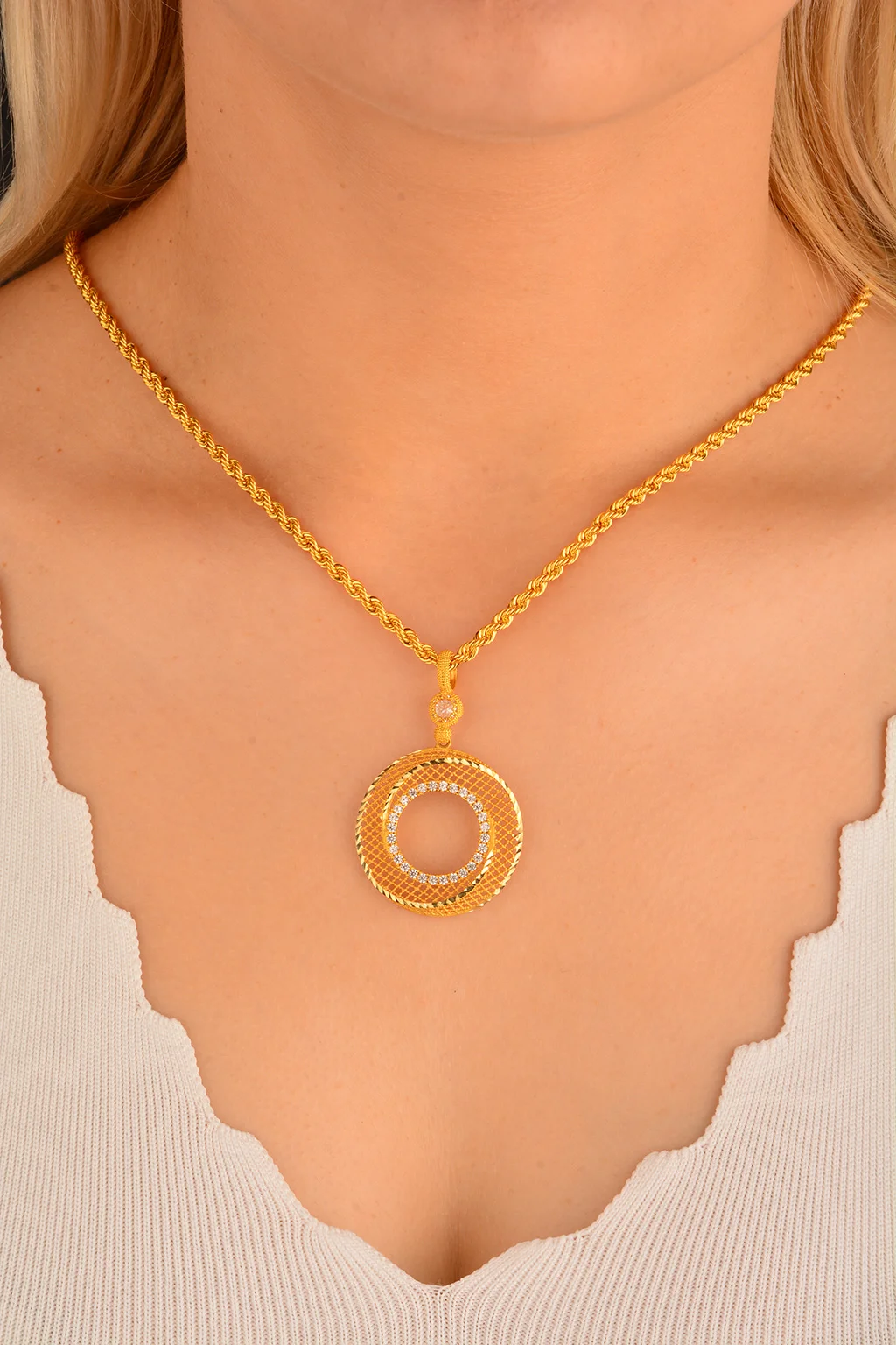 Cebeci 14 Ayar Taşlı Çerçeveli Altın Kolye Ucu